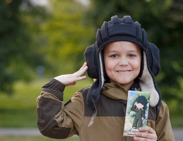 РосСМИ пишут, что прообразом картинки на российском оригинале стал 8-летний мальчик Алешка из Белгородской области, который выбегал встречать и провожать военных на войну в Украину. Шоколад в его честь выпустила фабрика "Красный октябрь".