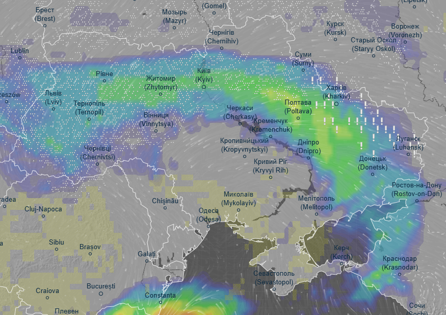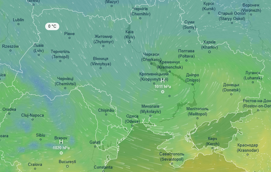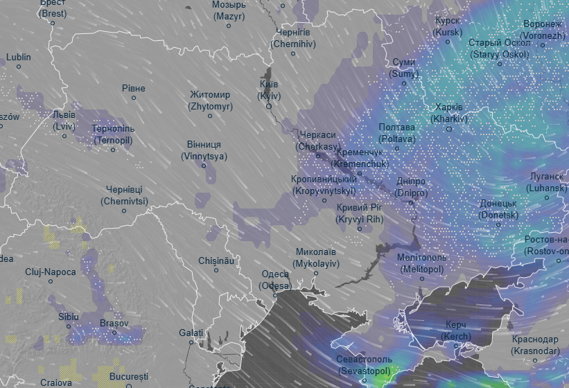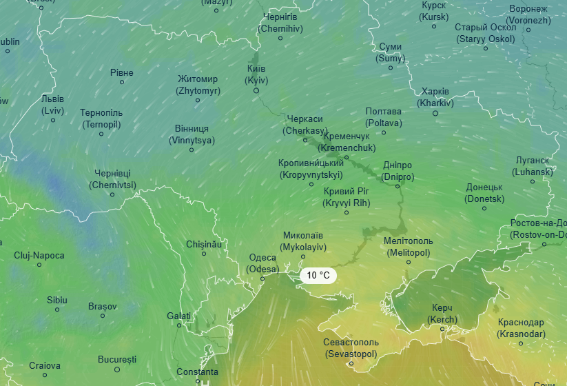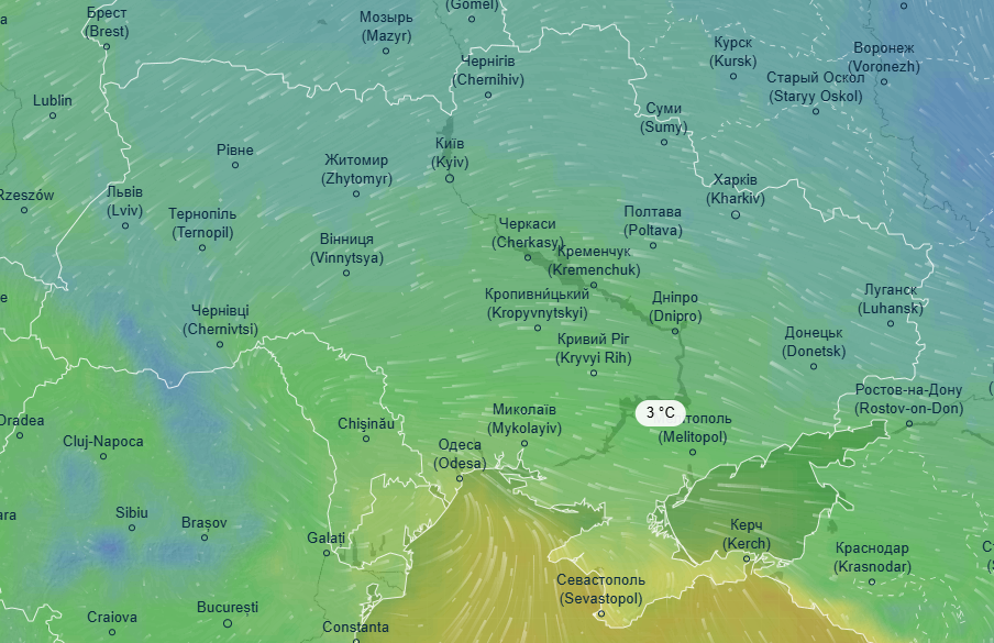 Об этом свидетельствуют данные ресурса Ventusky.