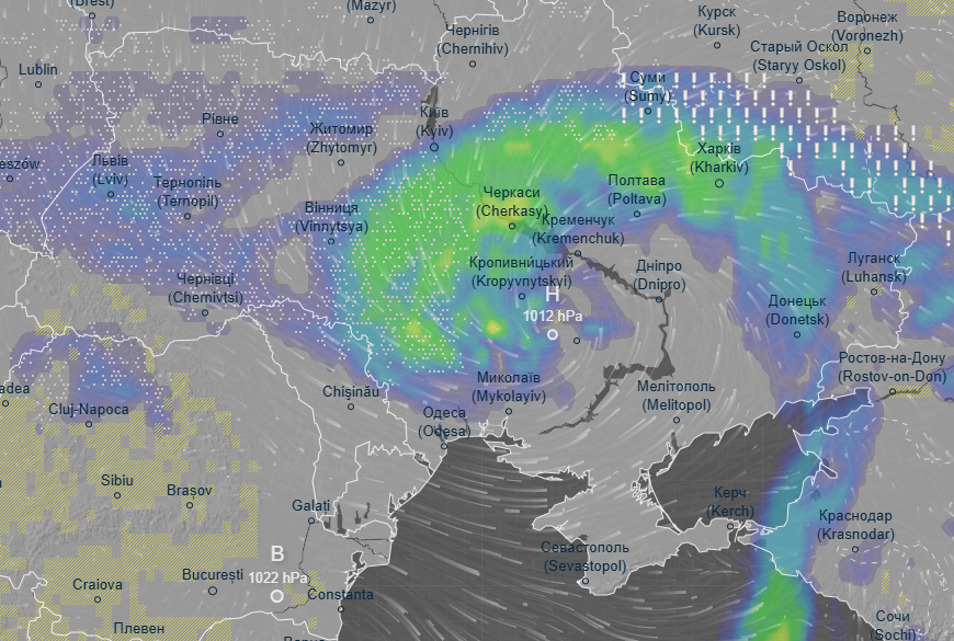 Утром во вторник, 10 декабря, снегопады и дожди накроют почти всю территорию страны, кроме южных областей и крайнего севера. Больше всего осадков выпадет на Полтавщине и Днепропетровщине, а на Харьковщине, Донетчине и Луганщине синоптики прогнозируют ледяные дожди.