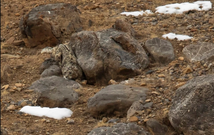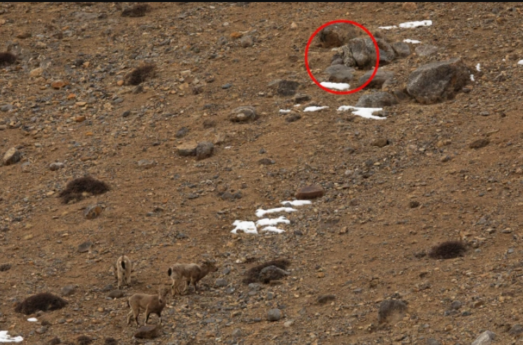 Снежный барс так замаскировался, наблюдая за своей добычей, что его почти невозможно увидеть - фото заставило сеть ломать голову.