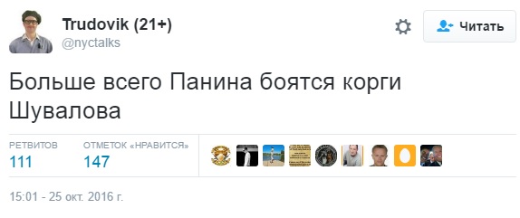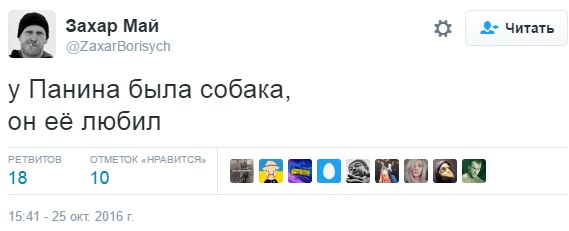 "Ступени деградации России - от собаки Павлова до собаки Панина. Ниже некуда? Уверяю: есть! Не ищите дна: его не существует", - пишет по этому поводу журналист и блогер Александр Сотник.