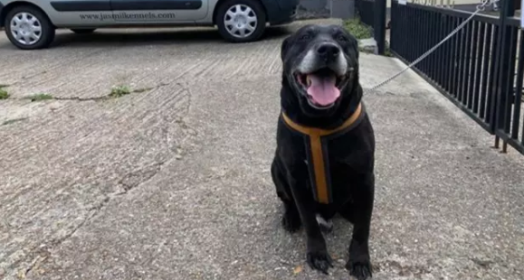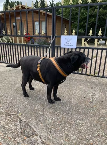 Черный лабрадор был найден возле питомника Джасмил в Апчерче, Кент, Великобритания. В записке говорилось, что его бросили через 10 лет, потому что хозяин потерял терпение.