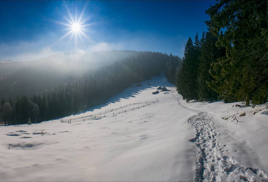 В социальных сетях активно размещают фотографии природы Карпатских гор, которые остаются заметенными снегом.