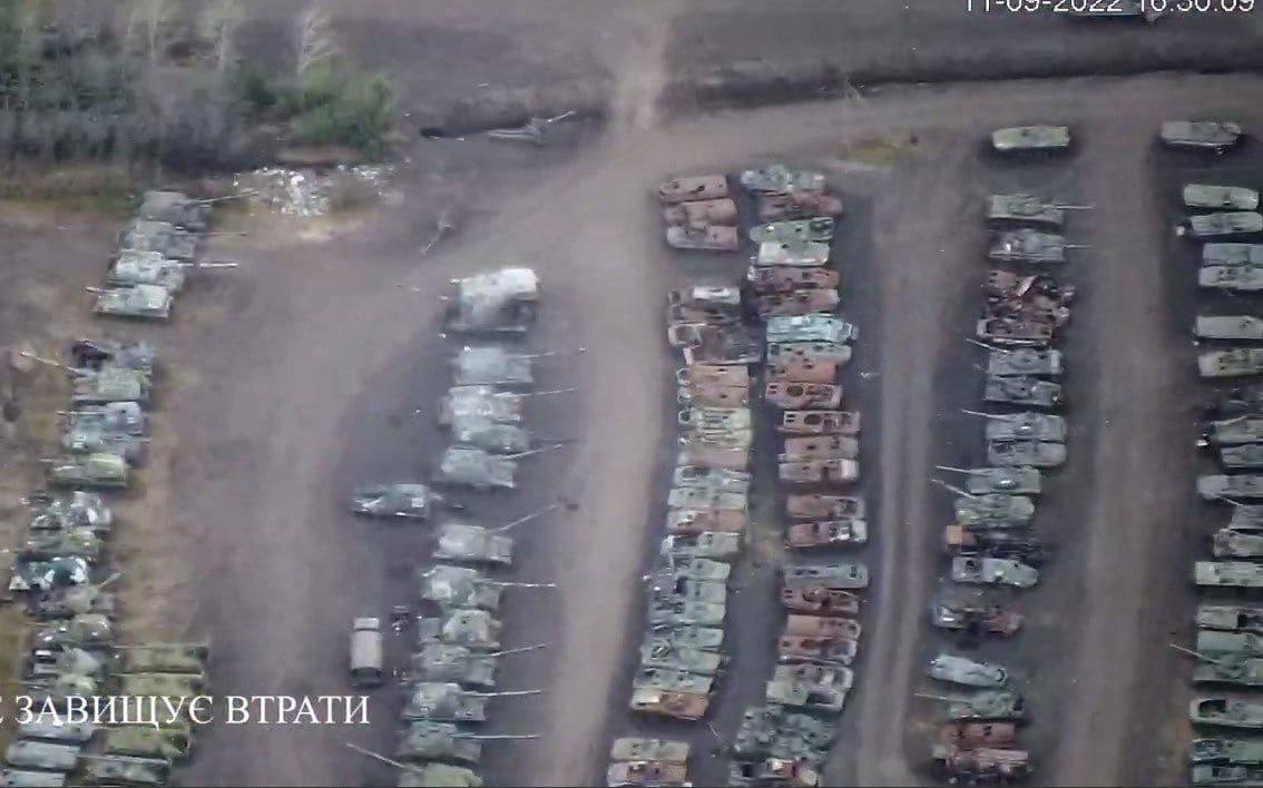 Россияне стянули туда сотни своих сожженных в Украине танков и бронемашин.