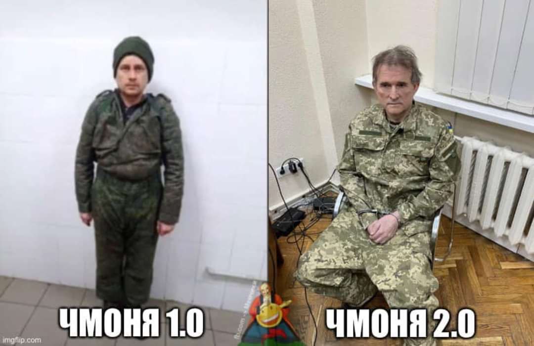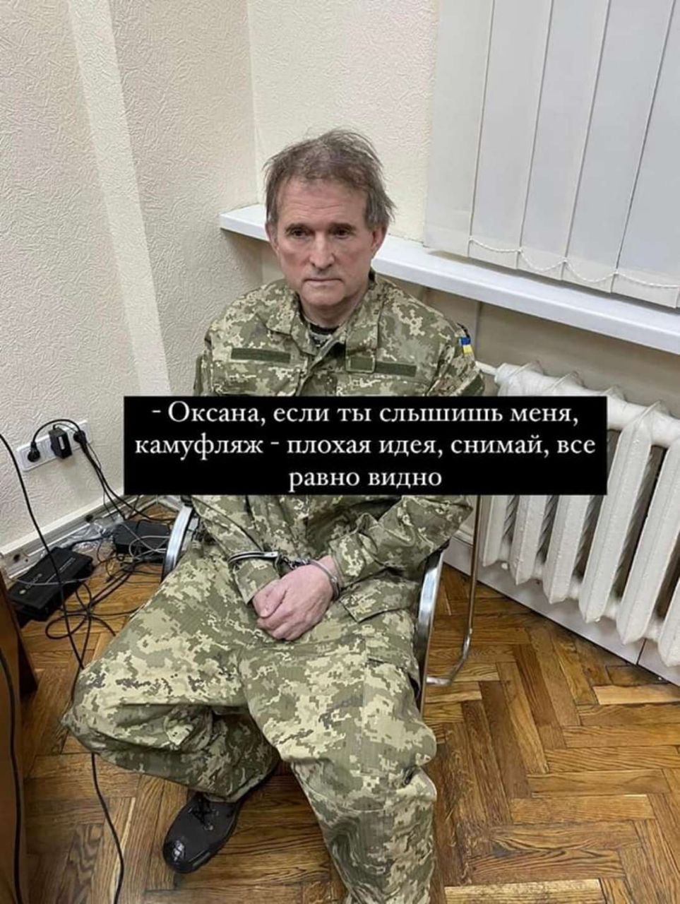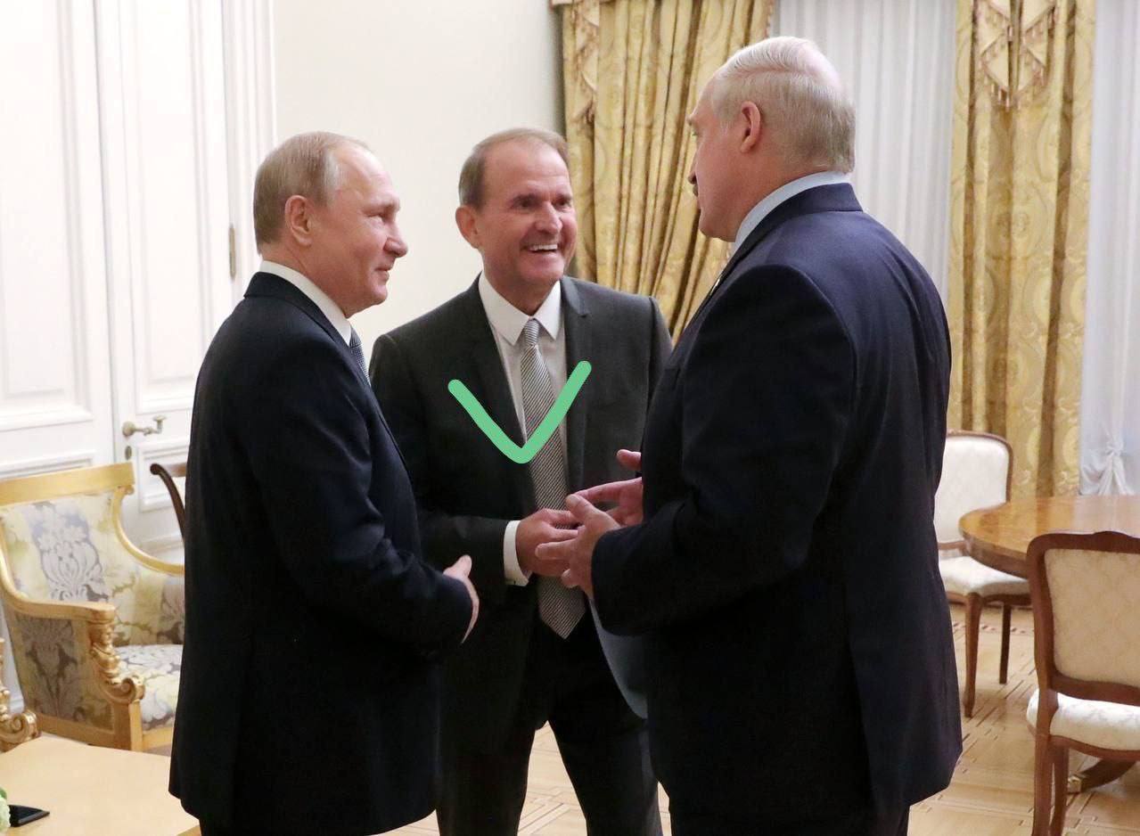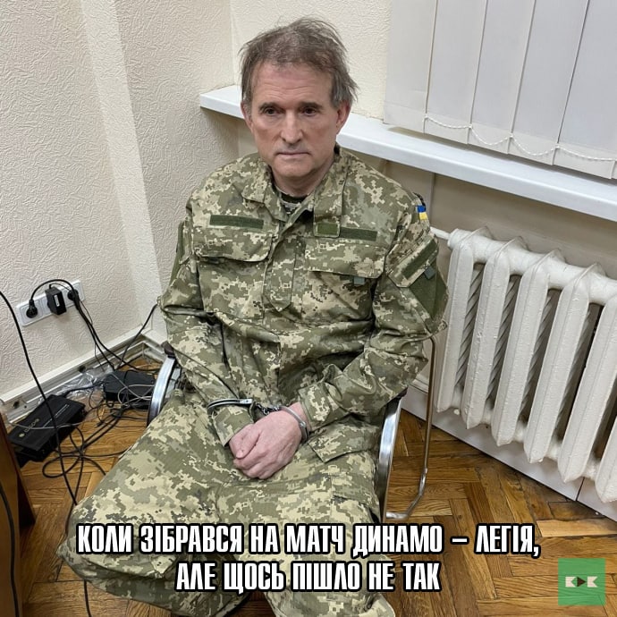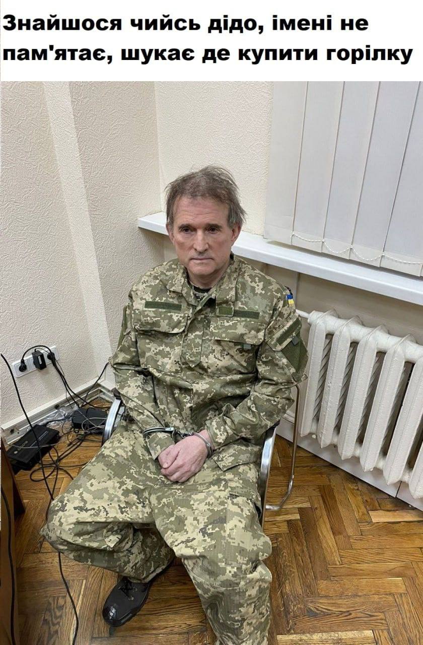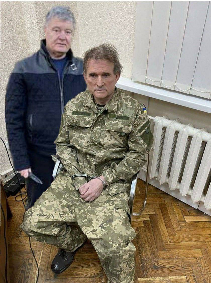 Народное творчество "оценило" арест одиозного нардепа - среди фотожаб были кадры Медведчука с Путиным и Лукашенко, Зеленским, Арахимей, Залужным и Ермаком. Встречались также фото с Порошенко с ножом в руке.