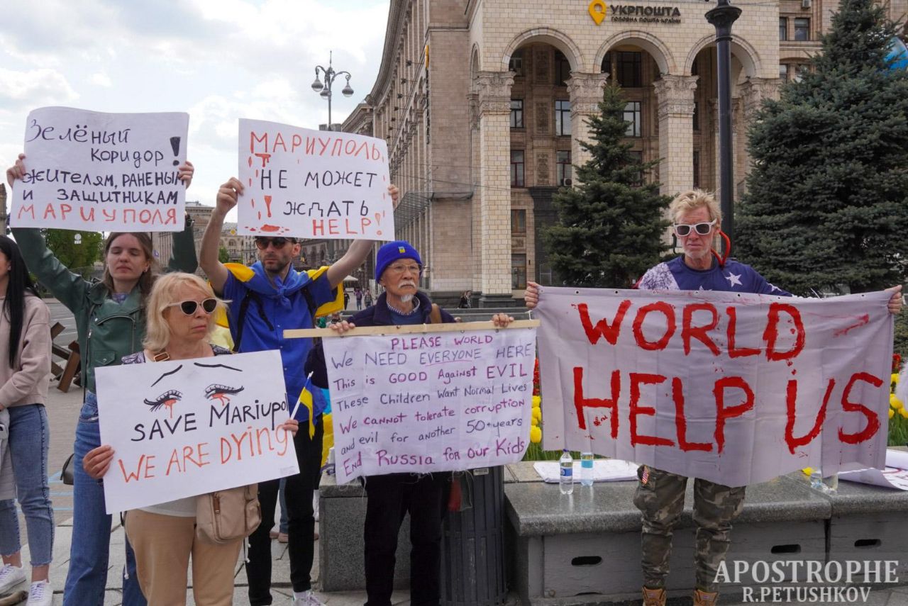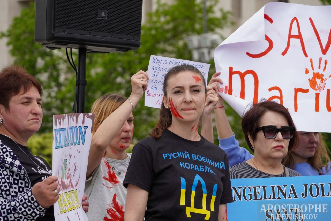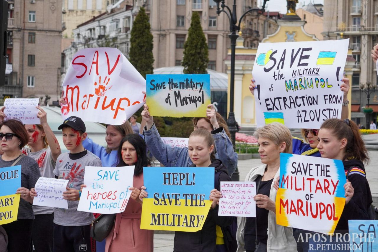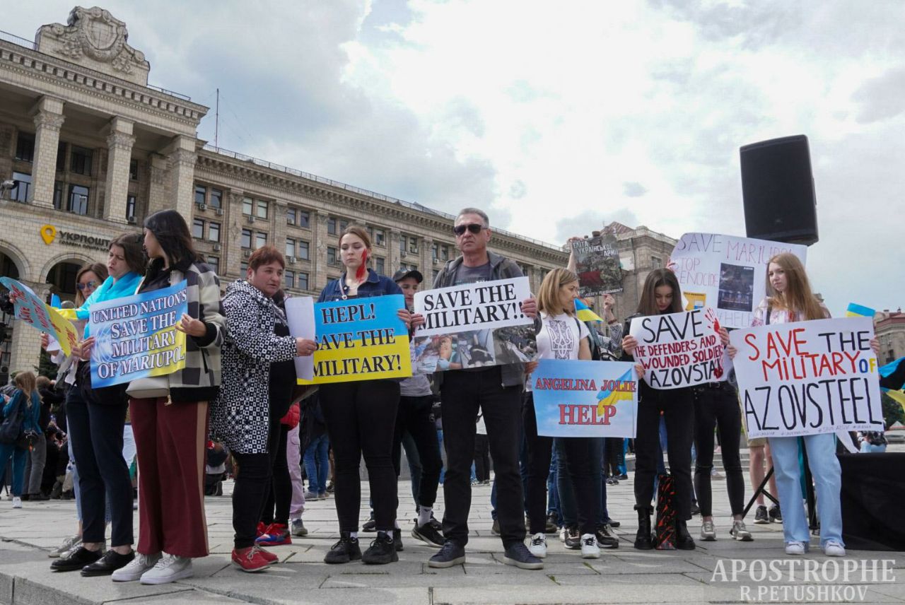 В Киеве на мирную акцию вышли близкие и родственники украинских военных-защитников Мариуполя, находящиеся в окружении российских оккупантов.