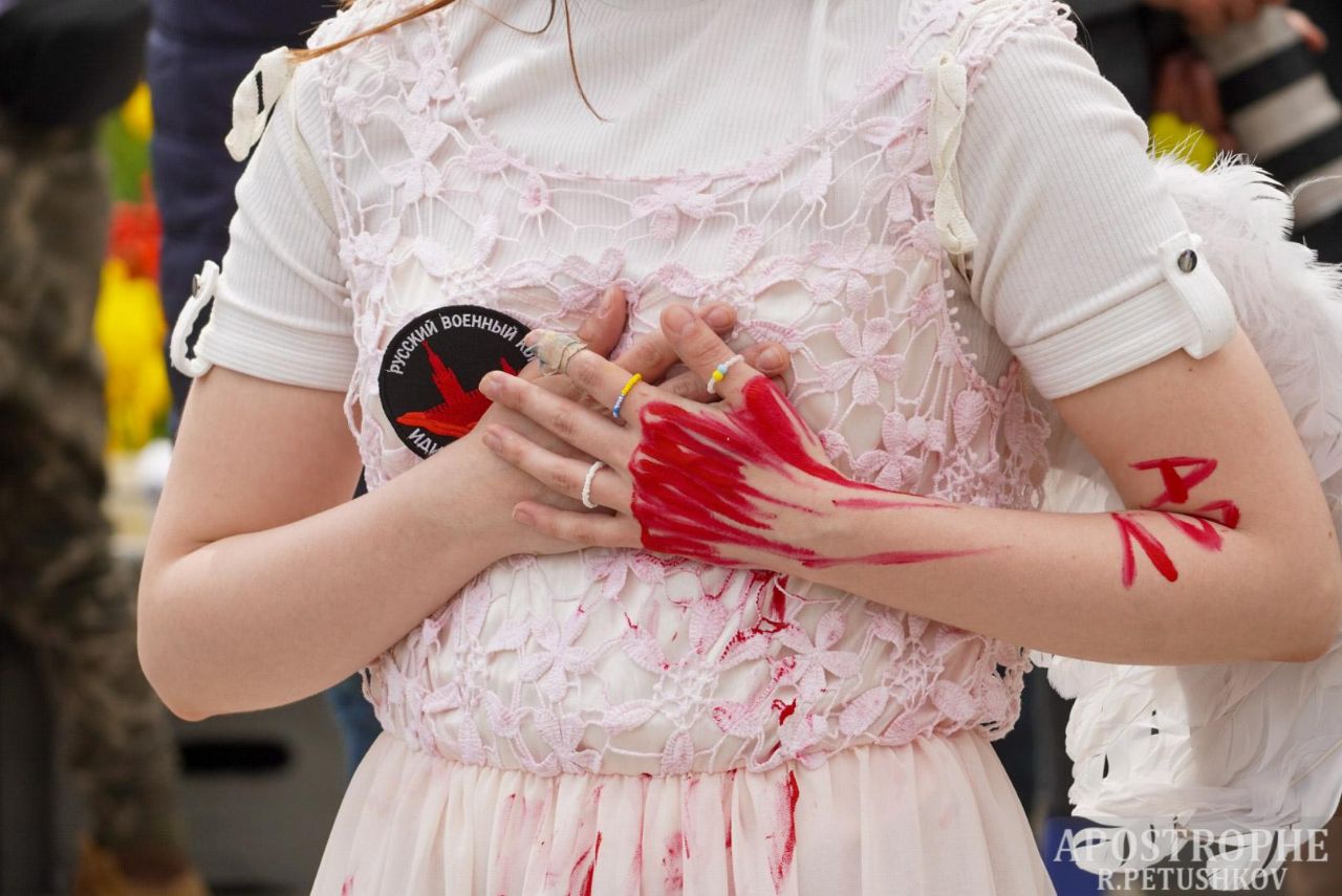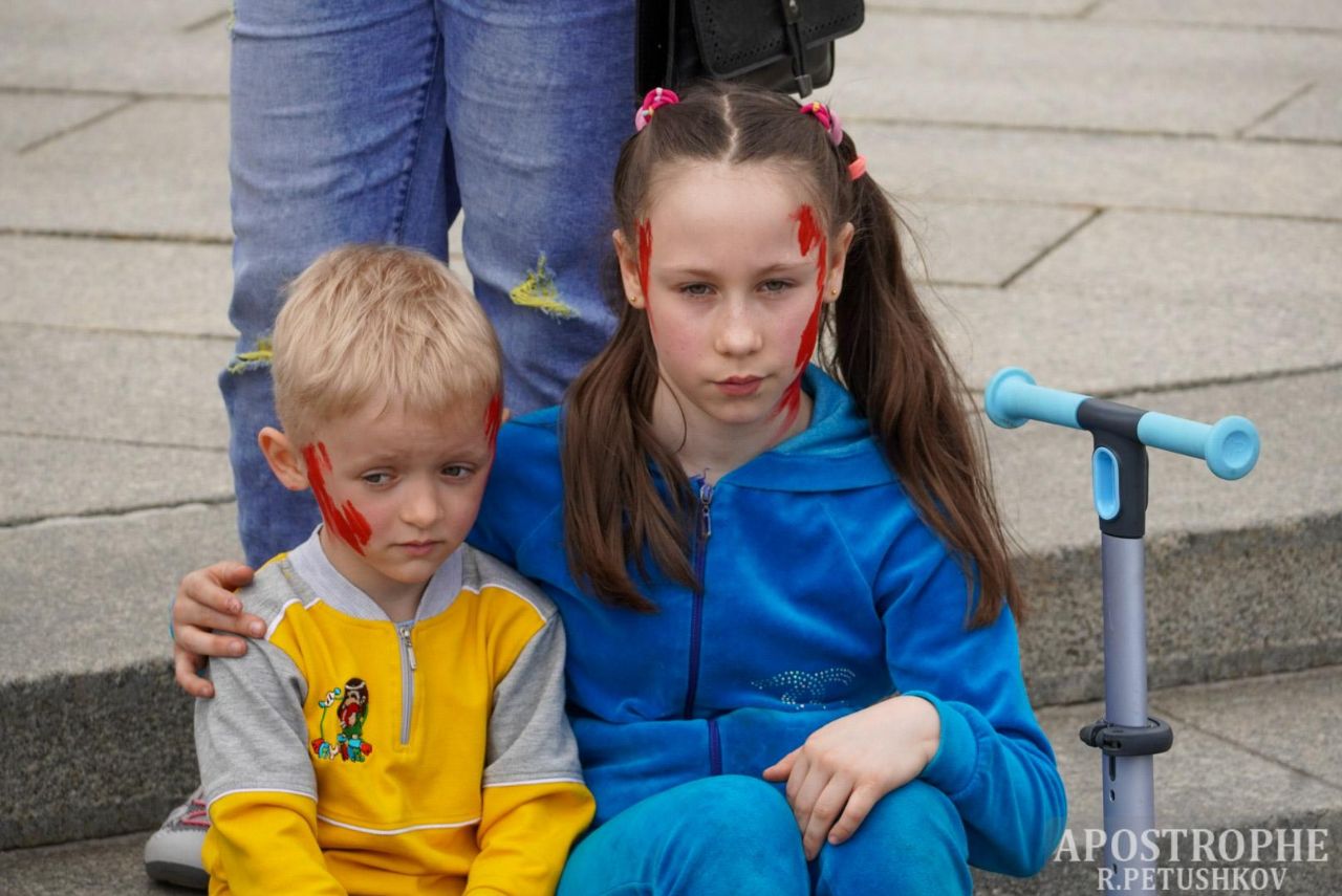 На митинг в центре города собралось около сотни человек. Среди митингующих - родные, друзья, жены и дети бойцов, которые сейчас находятся на заводе "Азовсталь".