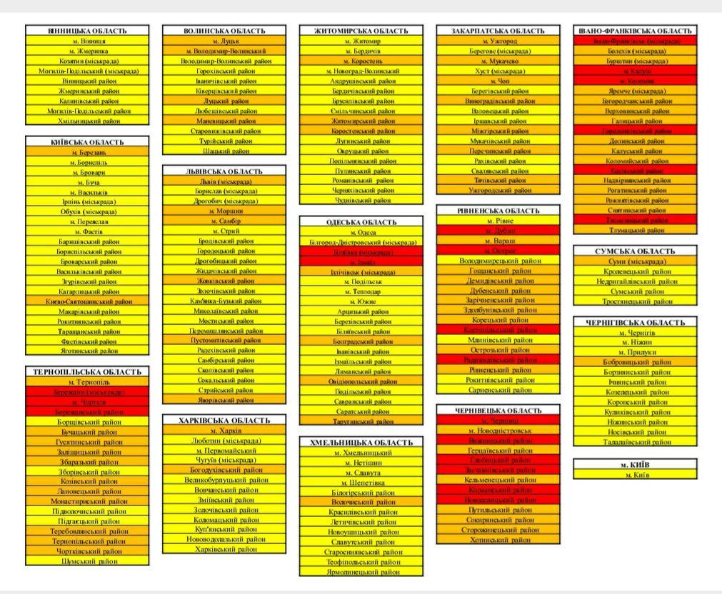 В четверг, 27 августа, Государственная комиссия по вопросам техногенно-экологической безопасности и чрезвычайных ситуаций обновила список регионов "красной зоны" - туда попали два областных центра - Ивано-Франковск и Черновцы.