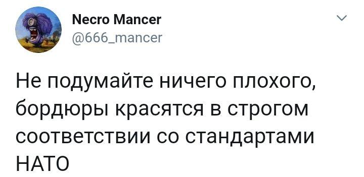 "Бордюры красятся в строгом соответствии со стандартами НАТО", - пошутил пользователь соцсетей с ником NecroMancer.