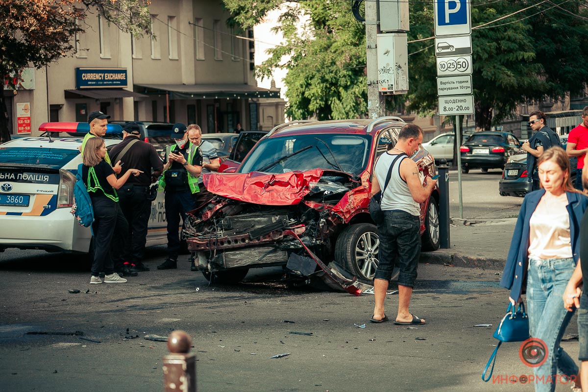 По предварительной информации, первыми столкнулись Ford и Lexus, которые ехали по перпендикулярным улицам. Оба водителя утверждают, что они двигались на зеленый сигнал светофора, что само по себе невероятно.