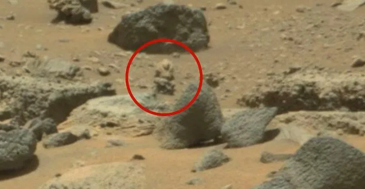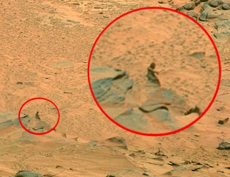 На изображениях, сделанных марсоходом Curiosity, обнаружили гуманоидное существо в скафандре и с оружием. Некоторые считали, что вероятный инопланетянин был в скафандре и с оружием, что подчеркнуто на отредактированном изображении.