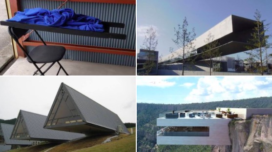 В основании здания находится узкая бетонная лестница, на которой держится остальная конструкция, и, кажется, она вот-вот должна упасть.