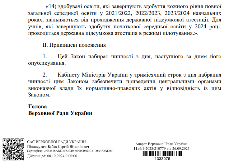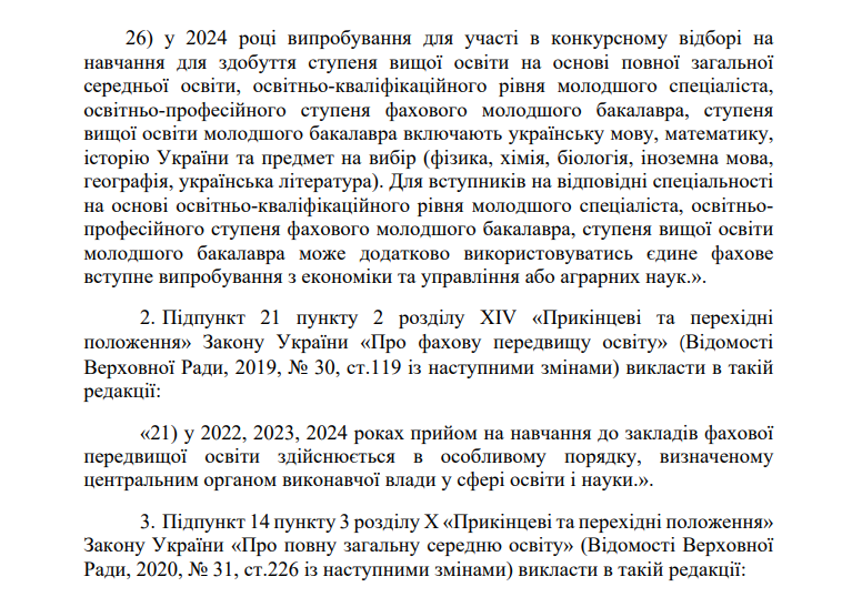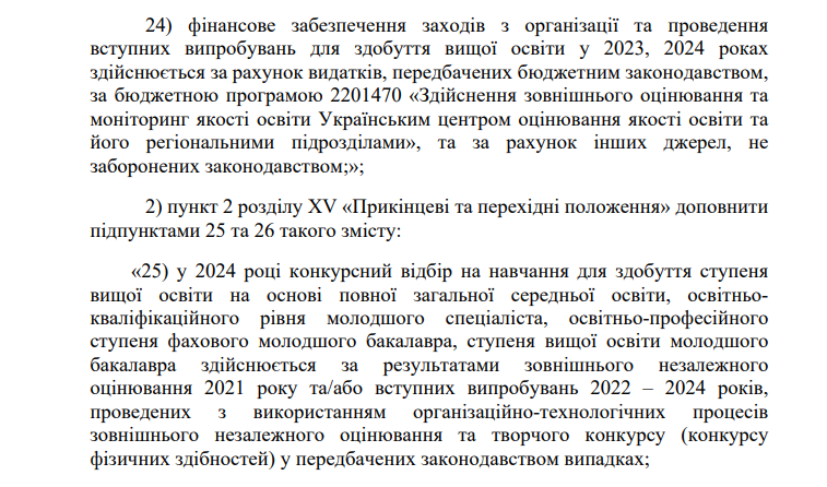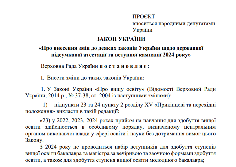 Верховная Рада 285 голосами поддержала закон, регулирующий поступление в заведения высшего образования в 2024 году.