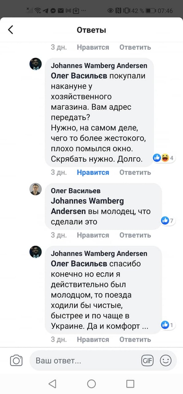 Эта история приобрела огласку в социальных сетях. Украинцы извиняются перед датчанином и пишут, что им стыдно за Укрзализныцю.