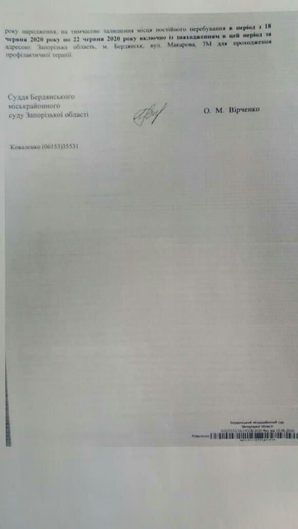 Об этом сказано в постановлении Бердянского горрайонного суда, опубликованном на сайте "Громадське".