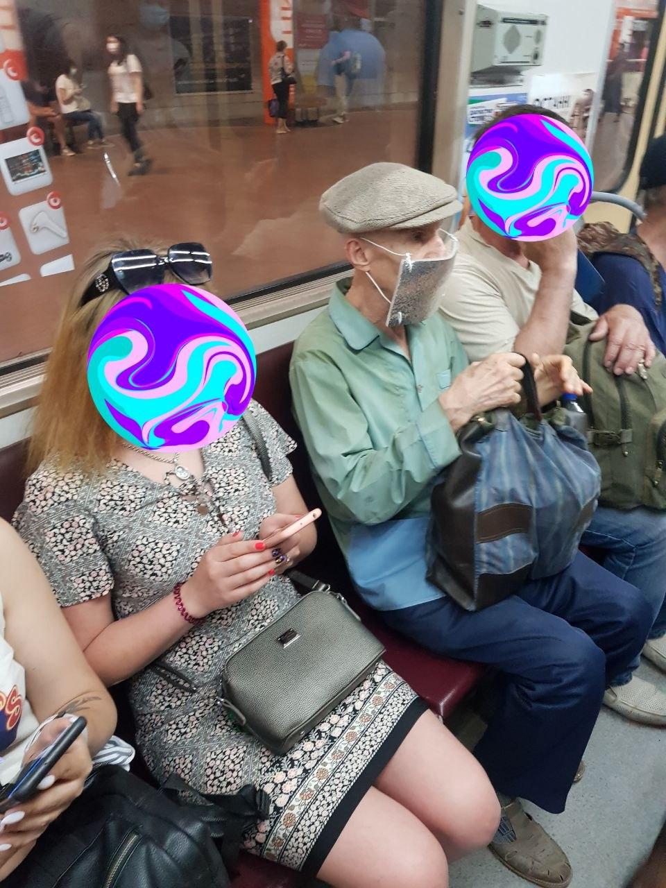 "Максимальный уровень защиты от коронавируса в метро по 8", - иронически заметил автор опубликованного снимка.