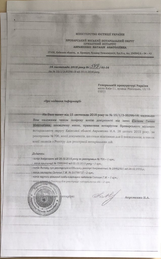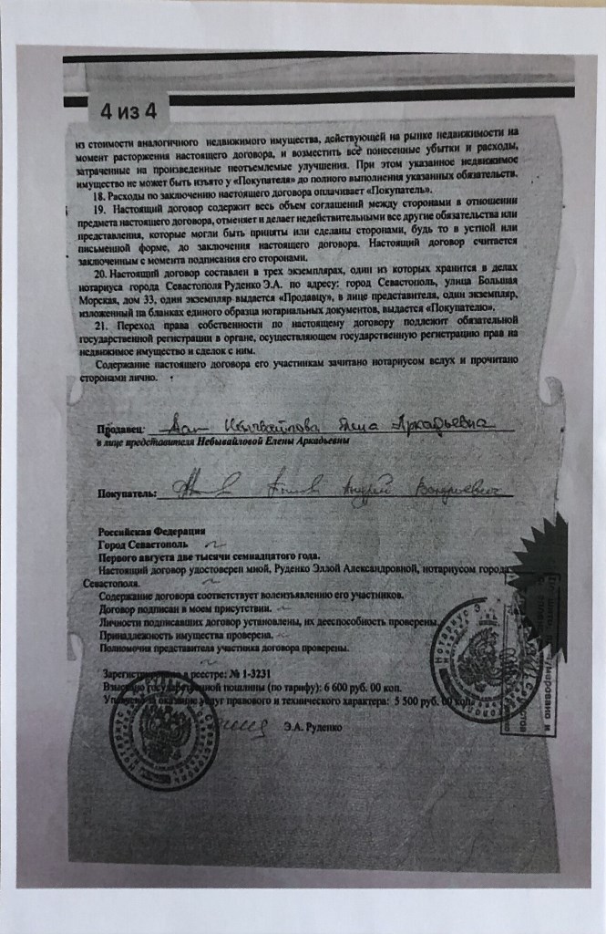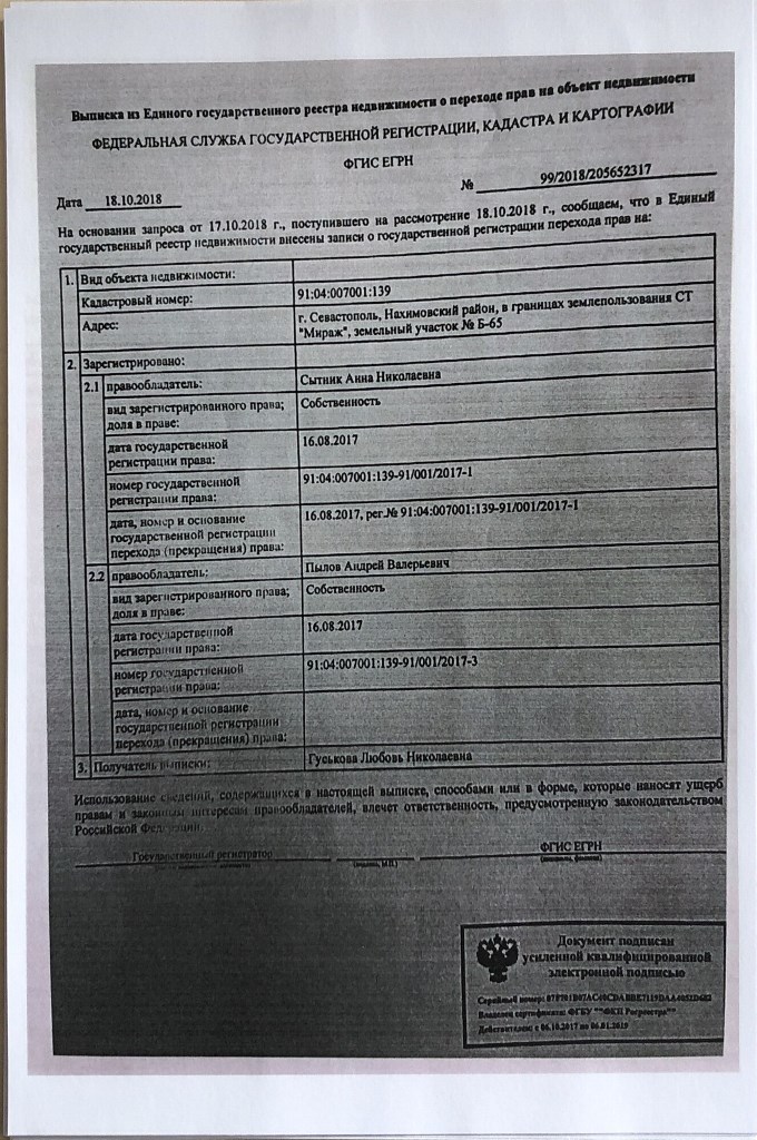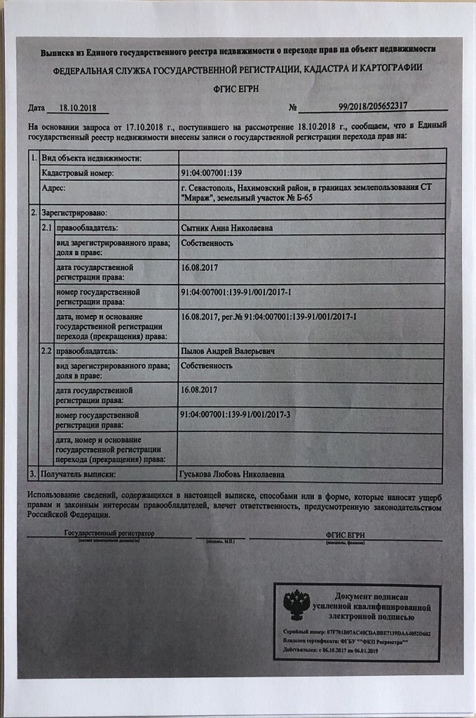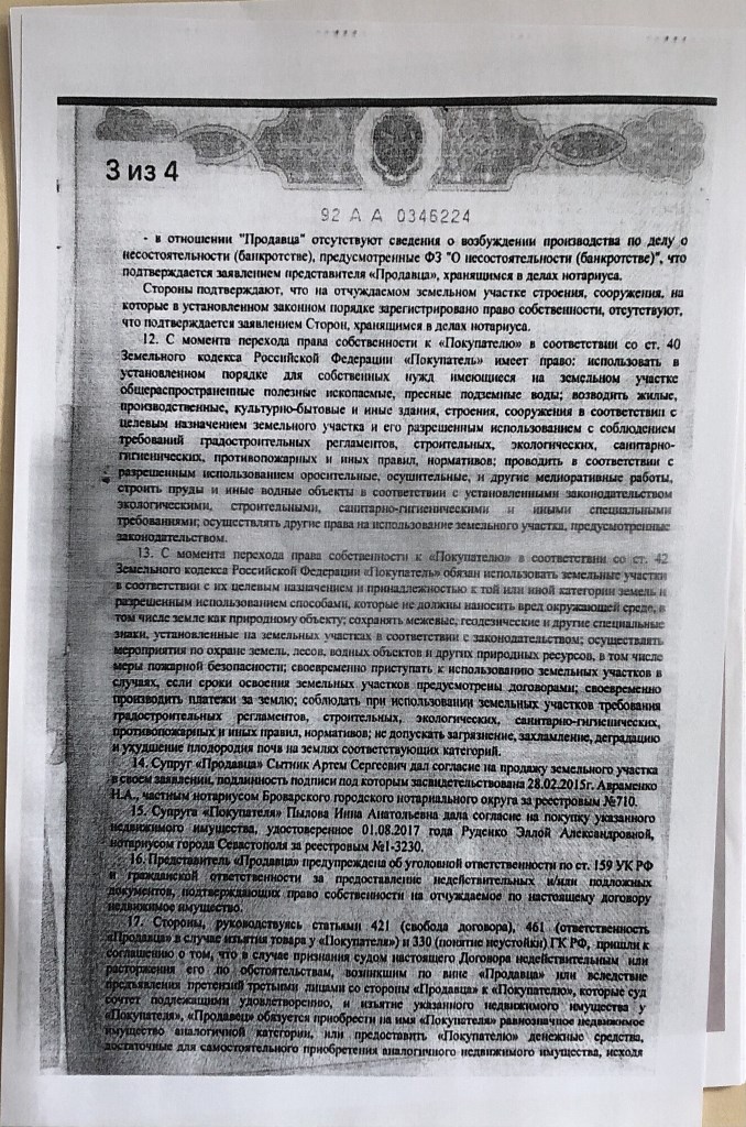 Речь идет об участке Б-65 (кадастровый номер 8536900000: 07: 001: 0226) в садовом обществе "Мираж" в Нахимовском районе Севастополя, который жена Сытника оформила на себя по российскому законодательству (российский кадастровый номер - 91: 04: 007001 : 139), и продала за 900 тыс рублей. В 2015 году Анна Сытник дала доверенность на право отчуждения имущества гражданке РФ Небывайловой. В тот же день Артем Сытник дал жене согласие на отчуждение участка, что подтверждается документами. 1 августа 2017 регистрационными органами оккупационной власти в Севастополе незаконно зарегистрировано право собственности Сытник Анны на участок площадью 0,0416 га в Севастополе. В тот же день Сытники через посредника продали участок за 900 тыс рублей (продавец - Сытник А.Н.), из которых 6600 российских рублей заплатили в российский бюджет в виде пошлины. Фактически же участок был продан еще дороже - за 2 млн рублей, что следует из объявлений о продаже. Ни в декларации жены, ни в декларации Артема Сытника средства от продажи не отражены.