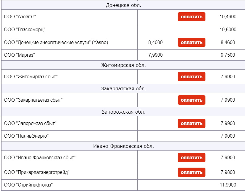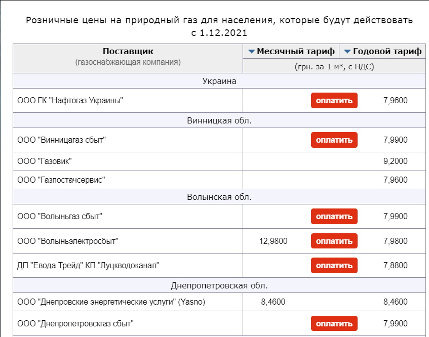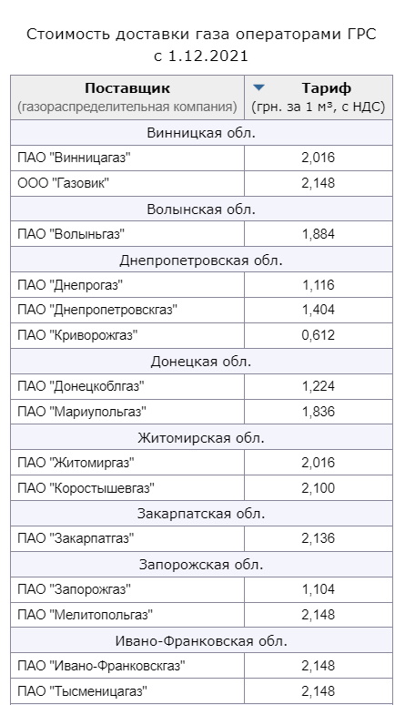 Газоснабжающие компании Украины начали публиковать месячные тарифы на газ для населения в декабре.