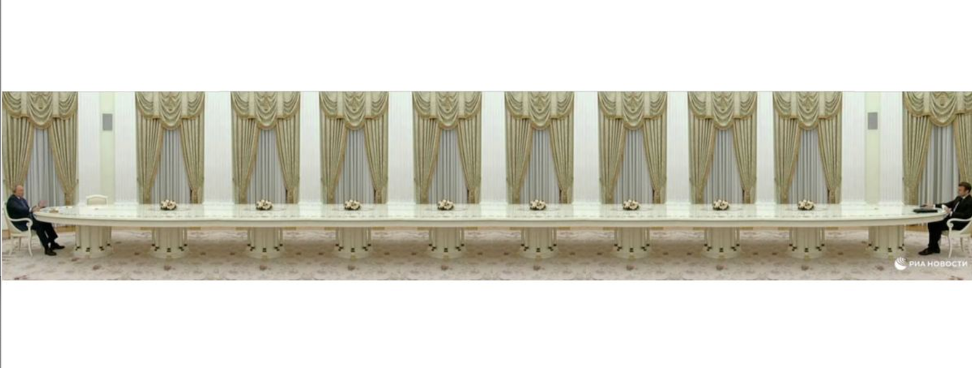 Некоторым даже показалось, что такая длина стола недостаточна для культурной, национальной и экономической пропасти между президентами Франции и России, поэтому создали следующий вариант: