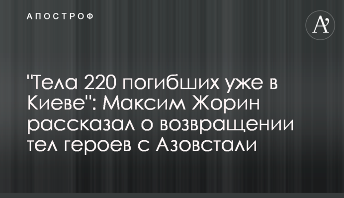 "Трудная тема возвращения тел погибших героев с территории завода Азовсталь. Могу подтвердить два обмена - тела 220 погибших уже сейчас находятся в Киеве, примерно треть - это азовцы, идет процесс опознания", – отметил Максим Жорин.