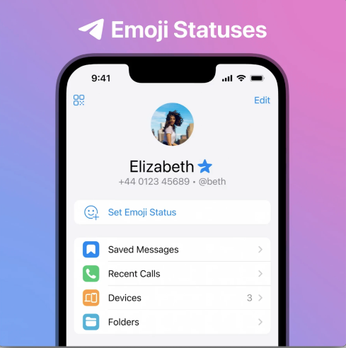 Подписчики Telegram Premium могут поменять звездочку рядом с именем, то с обновленным месседжером в меню с настройками можно выбрать анимированный эмодзи-статус. Он будет показан в списке чатов, группах и профиле пользователя.