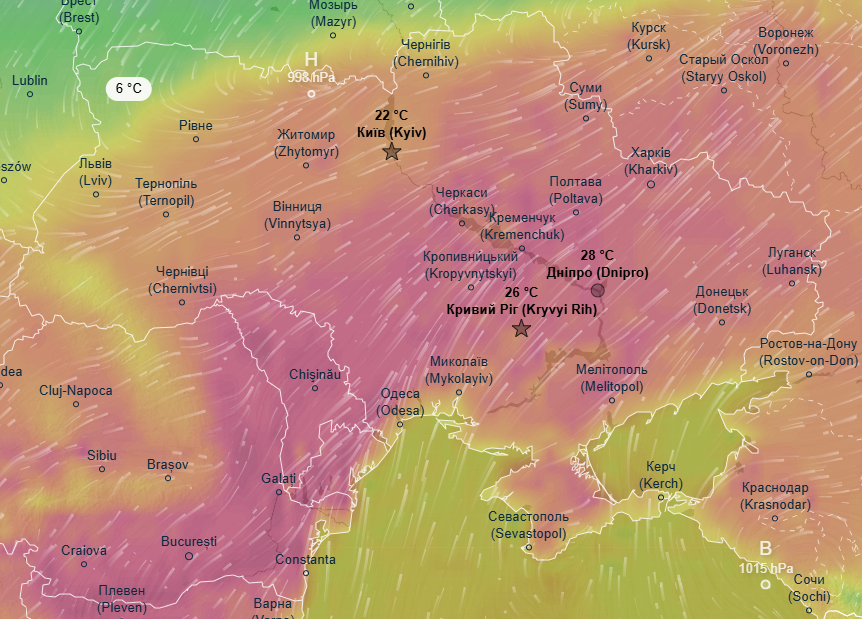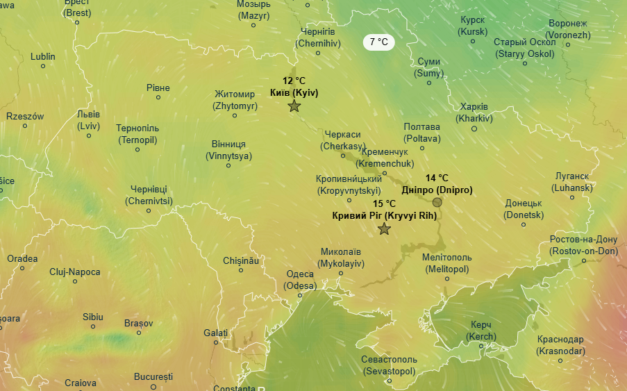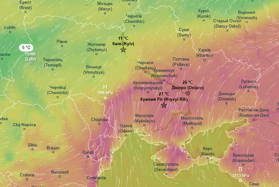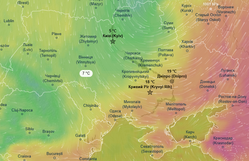 Дневной максимум в этот день будет составлять всего лишь +5 градусов в Киеве и области, а также в Черниговской, Сумской, Полтавской, Черкасской и Винницкой областях. В то же время в восточных и южных областях будет царить лето с температурой +22...+26 градусов.