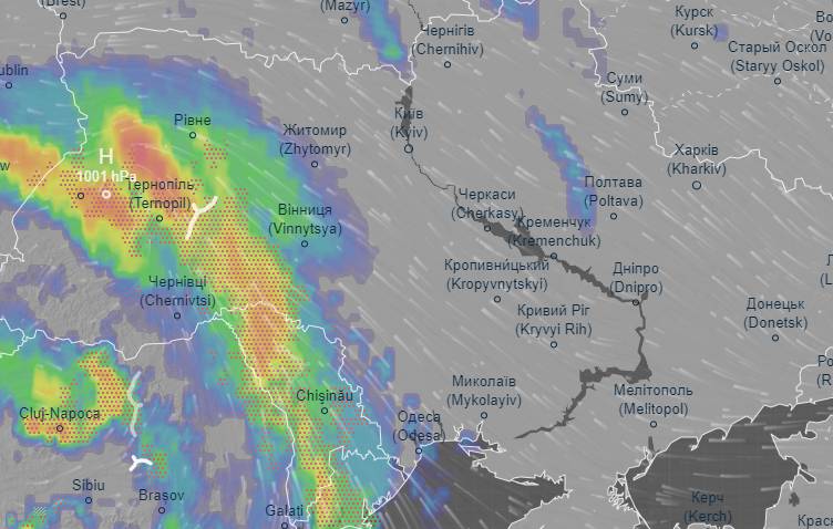 Утром 16 сентября дождевой фронт накроет центральные и южные области Украины, в Николаевской области пройдут сильные ливни, грозы ожидаются также в Одесской области. Сильные дожди накроют центральные области – Винницкую, Черкасскую, Кировоградскую.