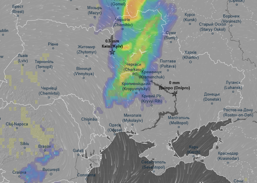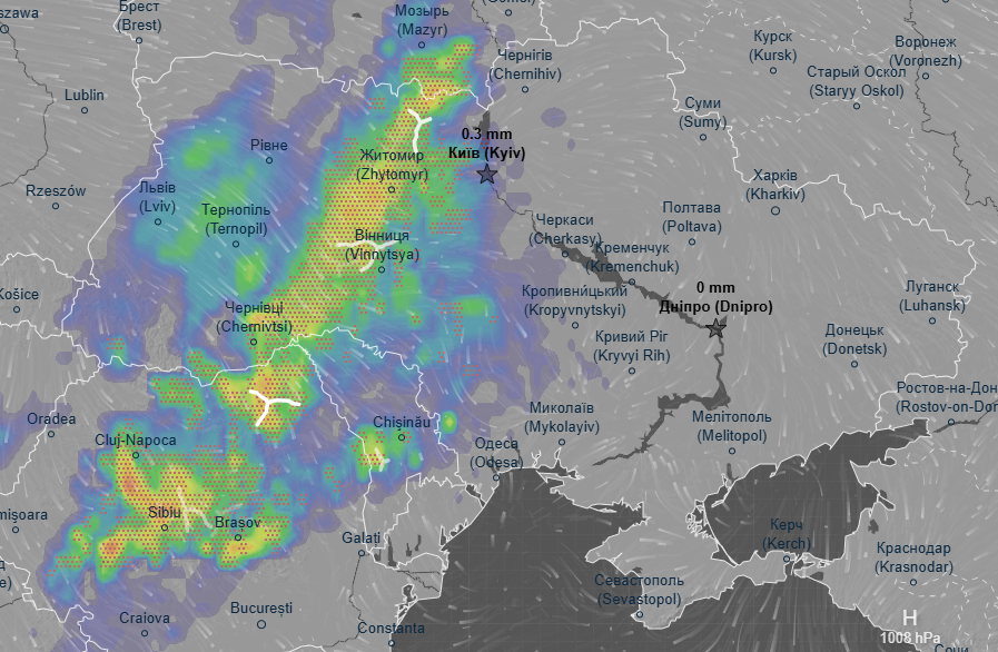 Такой прогноз дали синоптики метеорадара Ventusky.