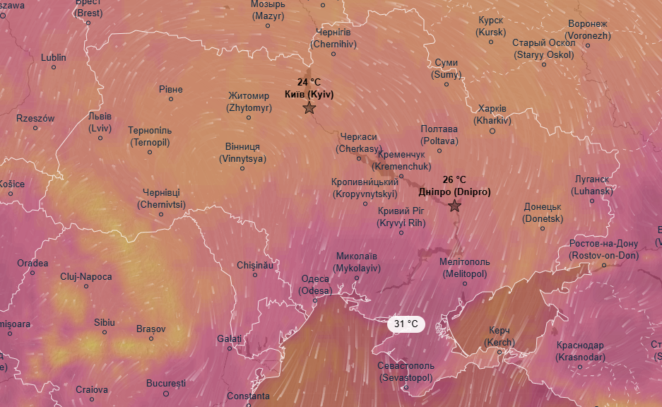 В субботу, 9 августа, всю территорию Украины разогреет до +26...+28 градусов, на юге - до +31 градуса. Без осадков.
