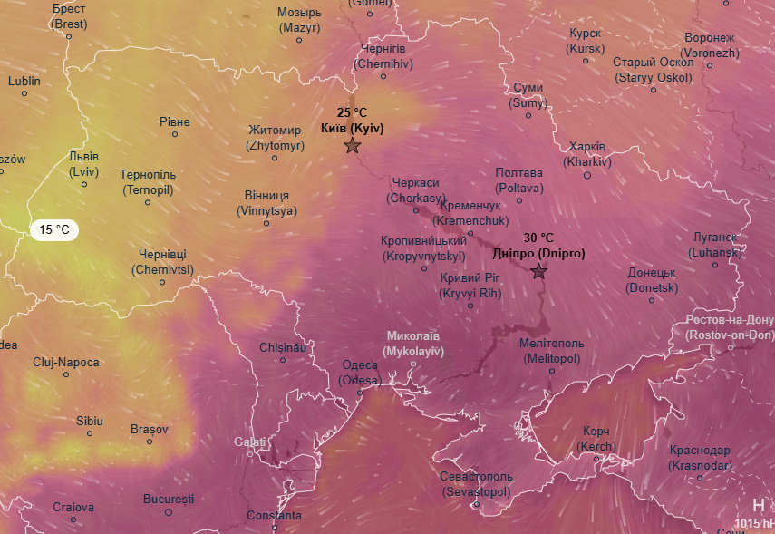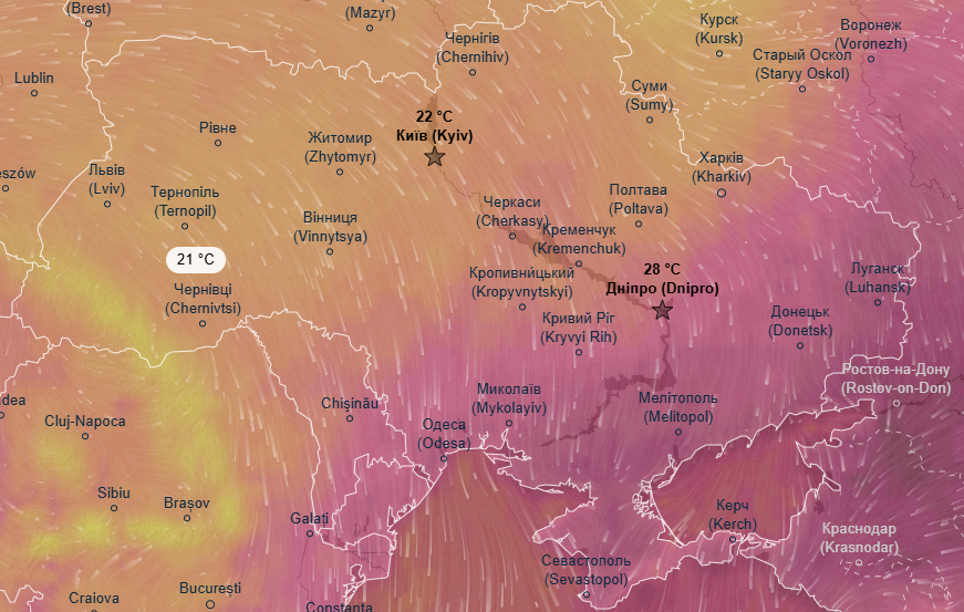 На остальной территории Украины в день ожидаются комфортные +21...+23 градуса. Ночью в центральных областях, а также в Киевской и Черниговской областях пройдут ливни и грозы.