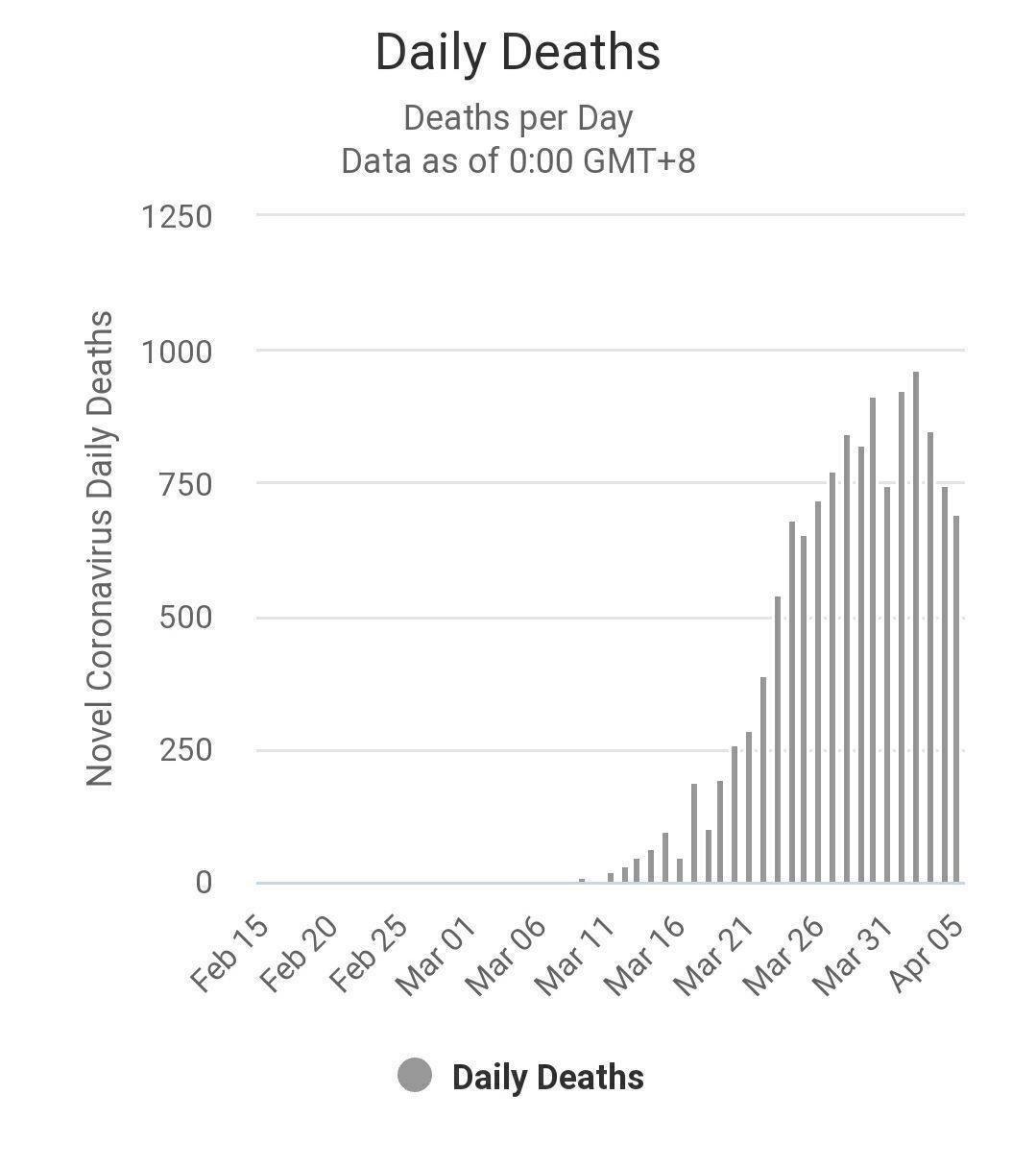 По состоянию на понедельник, 6 апреля, смертность от коронавируса в Испании начала снижаться.