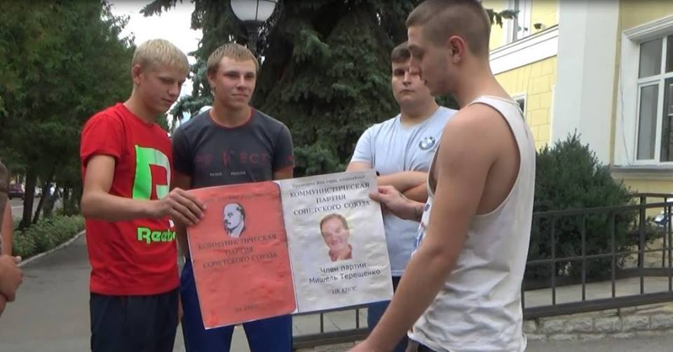 Студенты города Глухова вручили мэру Мишелю Терещенко партбилет КПСС из-за отмены дискотеки в День города по надуманному предлогу.