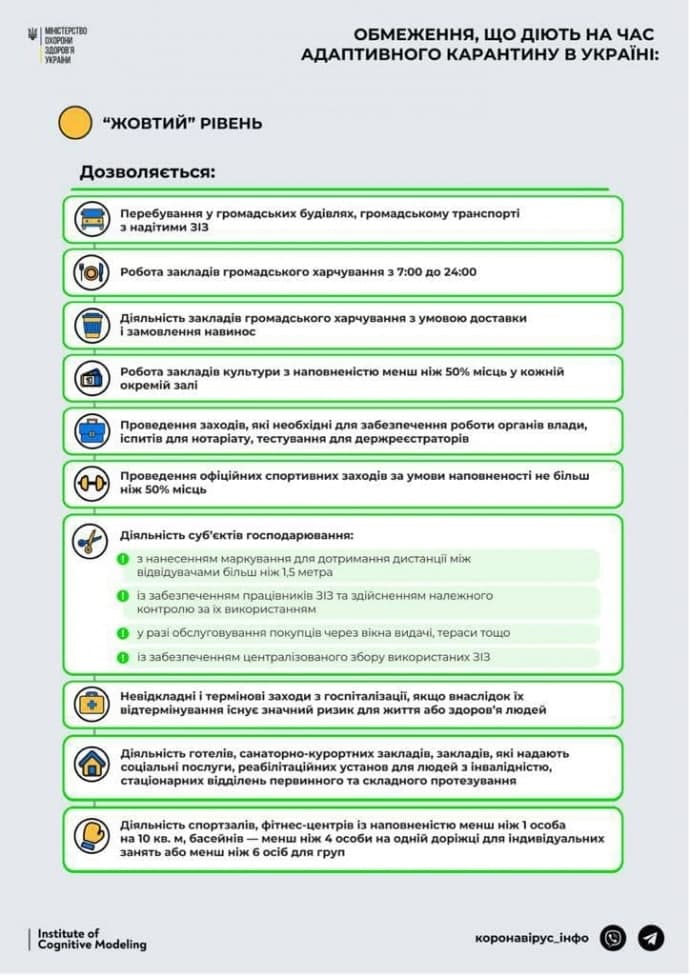 Харьковская и Хмельницкая области перешли в "желтую" зону эпидемической опасности, а Черниговская - в "оранжевую" зону уровеня эпидемической опасности распространения COVID-19.