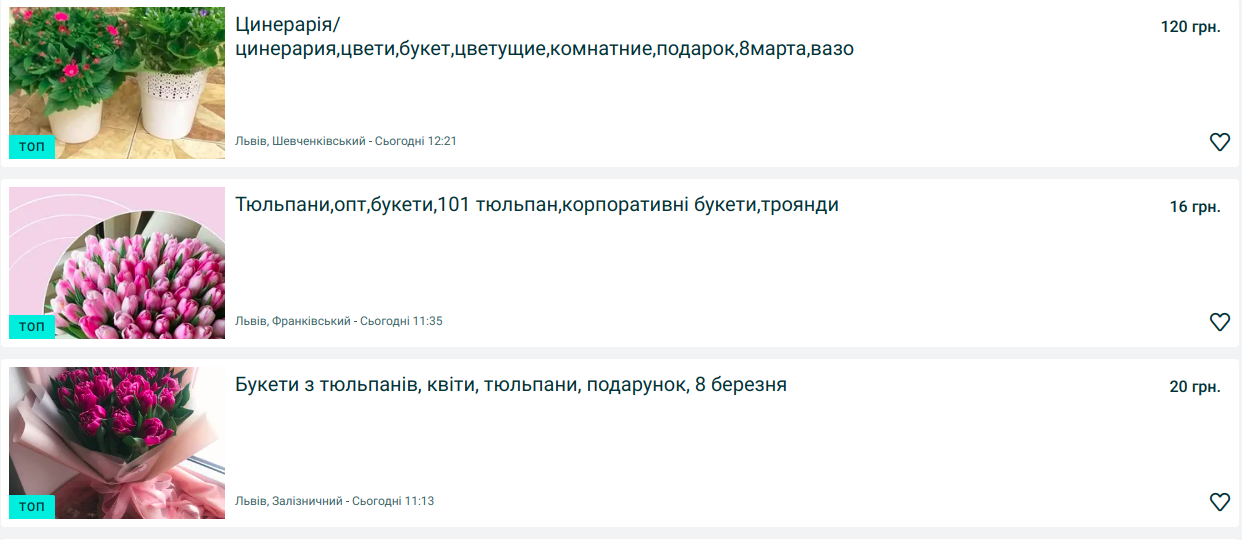 Цена на цветы в магазинах Львова: