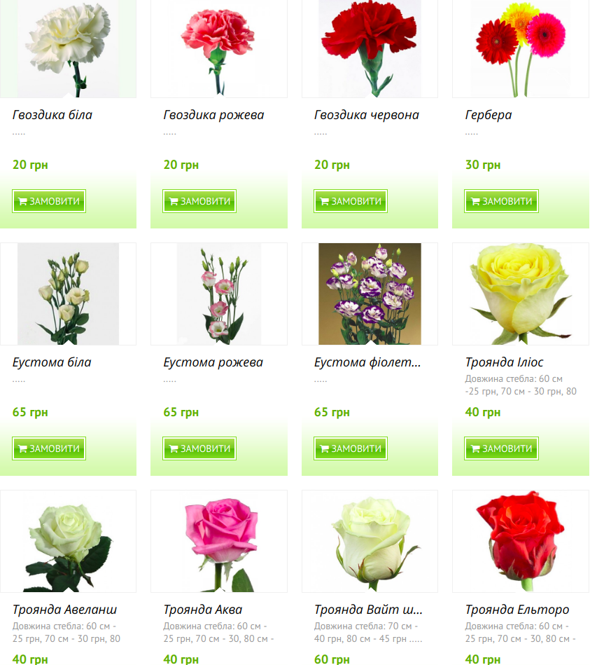 Цена цветов в Харькове: