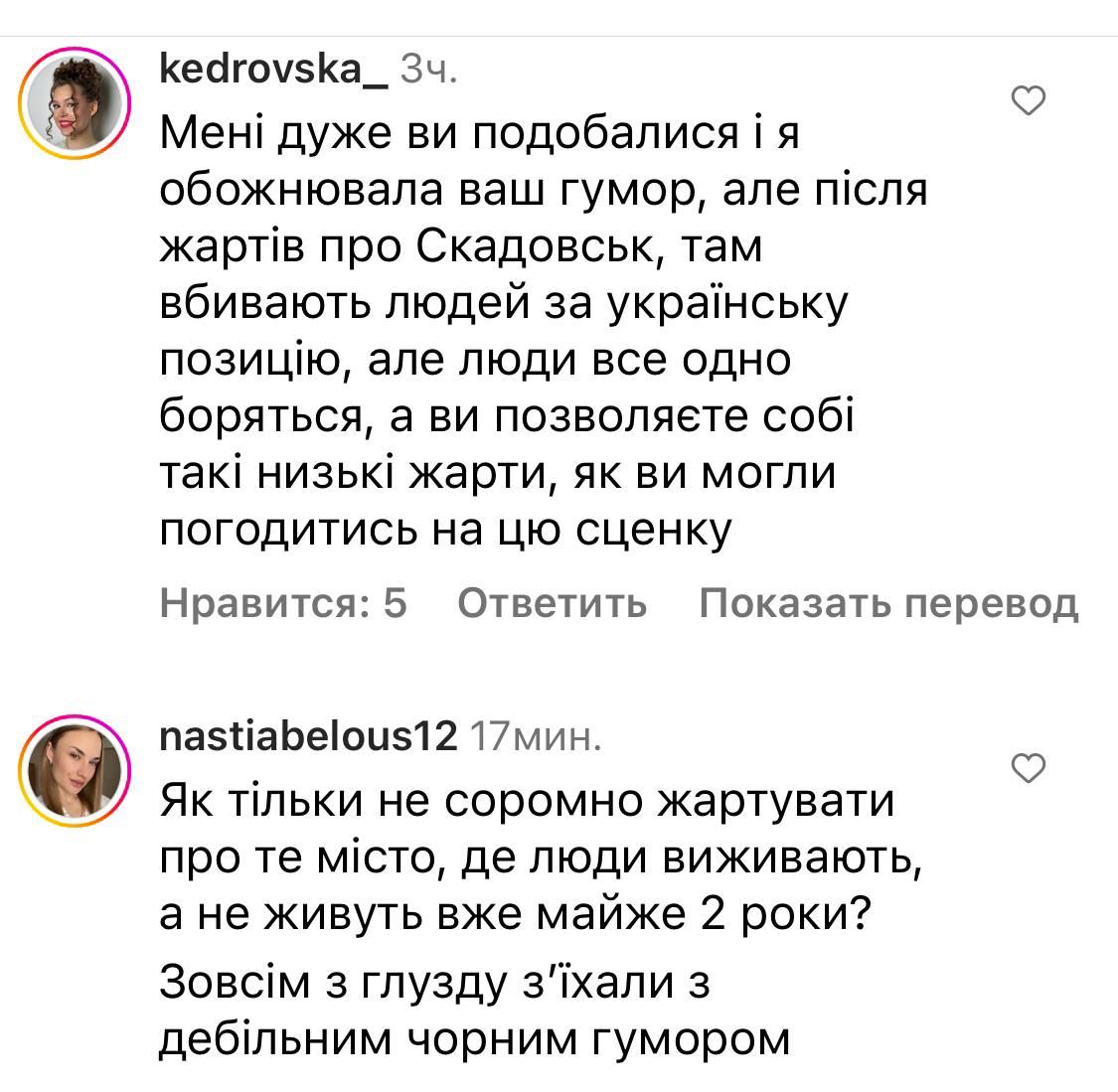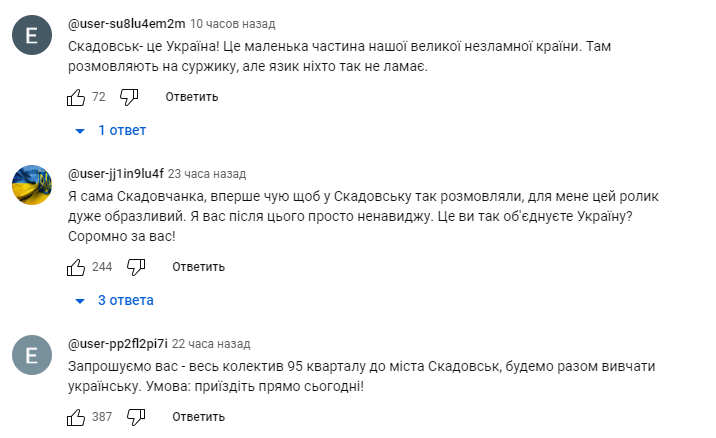 Украинцы отреагировали на юмор, назвав данное шоу "тупым" и низкопробным, отмечая, что на самом деле жители Скадовска прекрасно знают, понимают и разговаривают на украинском языке.