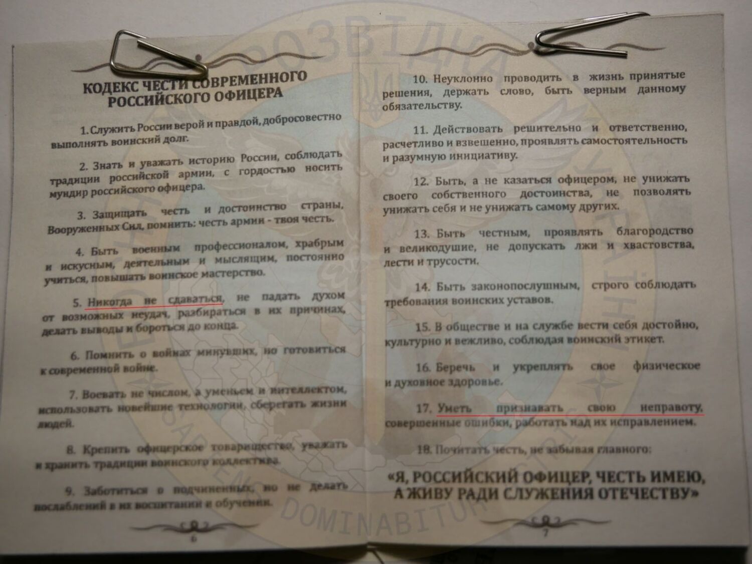 "Российский офицер должен уметь признавать свою неправоту". С учетом здравого смысла, именно этот пункт должен стать отправной точкой для отказа оккупационных войск выполнять преступные приказы или сдаваться в плен;