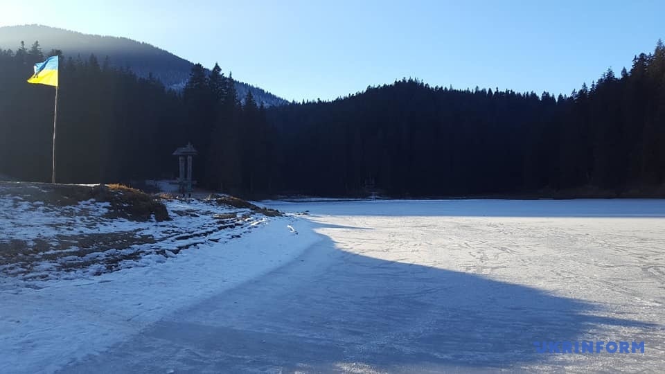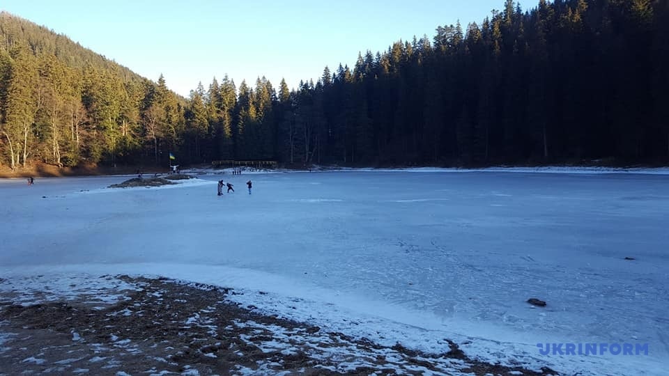 На Закарпатье, где установилась морозная погода, замерзло самое большое по площади высокогорное озеро страны - Синевир.