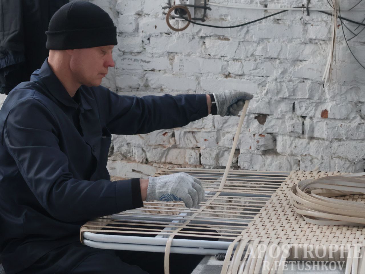 Он также рассказал, что на одном из цехов по производству плетеной мебели работы ведутся множеством людей вручную и производятся по заказу предприятий, которые платят деньги и размещают ее в разных местах. В том числе и в исправительных учреждениях, и даже в лагере для содержания военнопленных.