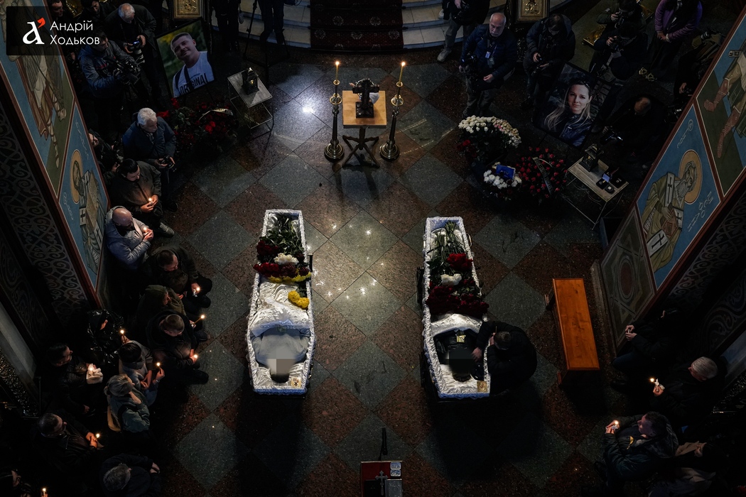 В понедельник, 27 октября, в Киеве в Свято-Михайловском соборе началась церемония прощания с журналисткой телеканала "FreeДом" Аленой Грамовой (Елена Губанова) и оператором Евгением Кармазиным, которые погибли в Краматорске в результате удара российского БПЛА "Ланцет".