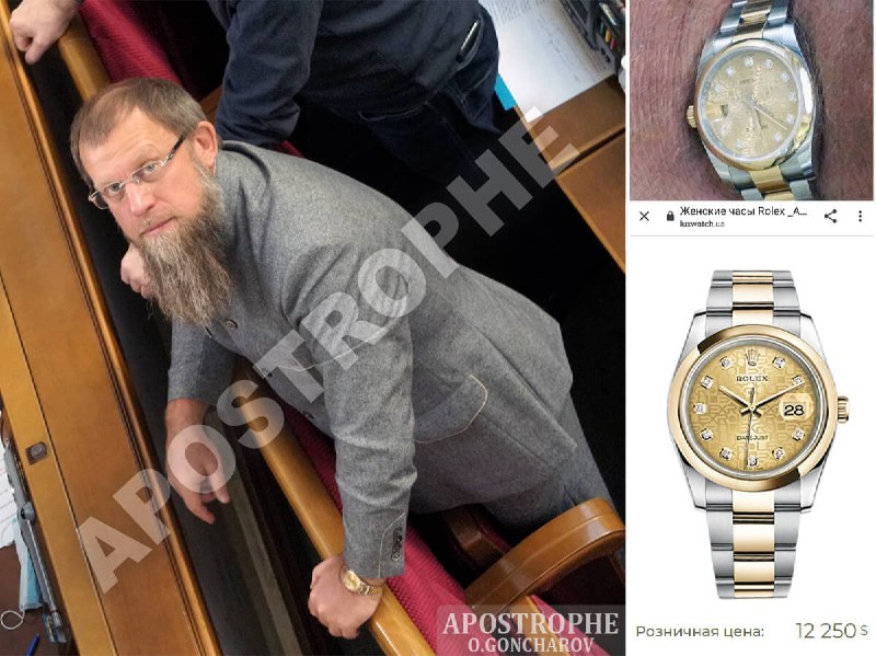 У политика заметили элитные часы марки Rolex. Их цена достигает 12 250 долларов. Однако больше удивляет не их стоимость (по такой цене можно купить авто с пробегом), а то, что часы женские. Это видно по дизайну и написано на сайте, где их можно приобрести.