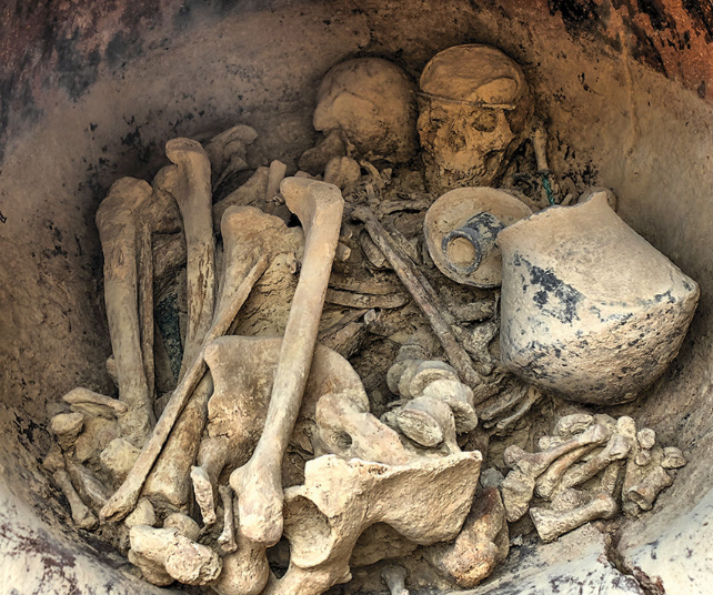 Под полом ученые нашли глиняный кувшин со скелетами мужчины и женщины. По данным радиоуглеродного датирования, они умерли примерно в 1650 году до нашей эры.