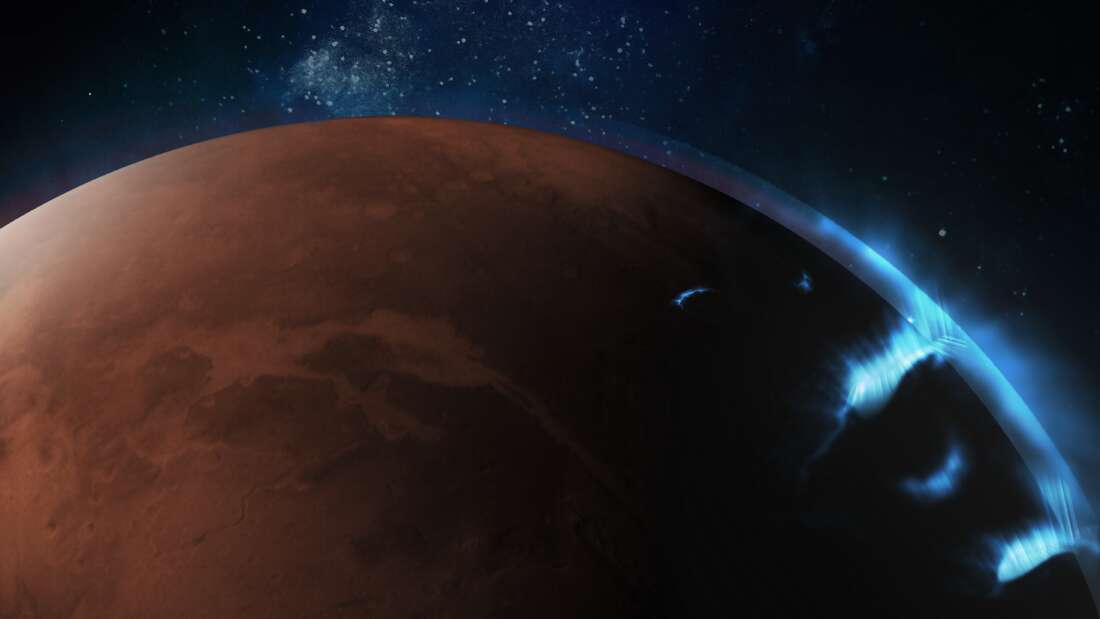 В отличие от полярных сияний на Земле, марсианские расположены дальше от своей планеты и менее яркие – из-за тонкой атмосферы и отсутствия магнитного поля.
