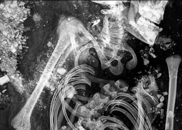 Из-за невозможности использования компьютерной томографии, ученые выбрали метод микрофокусной рентгенографии, и сделали около полутора десятков снимков. На снимках черепа ученые увидели молочные и постоянные зубы, благодаря чему смогли определить возраст ребенка.