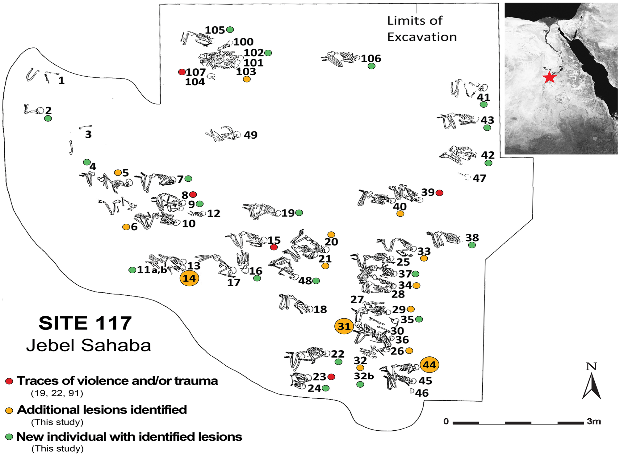 Всего были исследованы останки 61 человека, которые нашли на могильнике Джебель Сахаба. Их возраст от 18600 до 13400 лет.