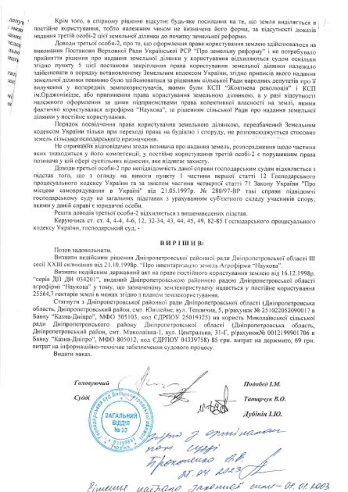 По его словам, суд поддержал позицию жителей и установил отсутствие у агрофирмы прав на спорные земельные участки, но в дело вмешалась Днепропетровская окружная прокуратура, подавшая отдельную апелляционную жалобу.