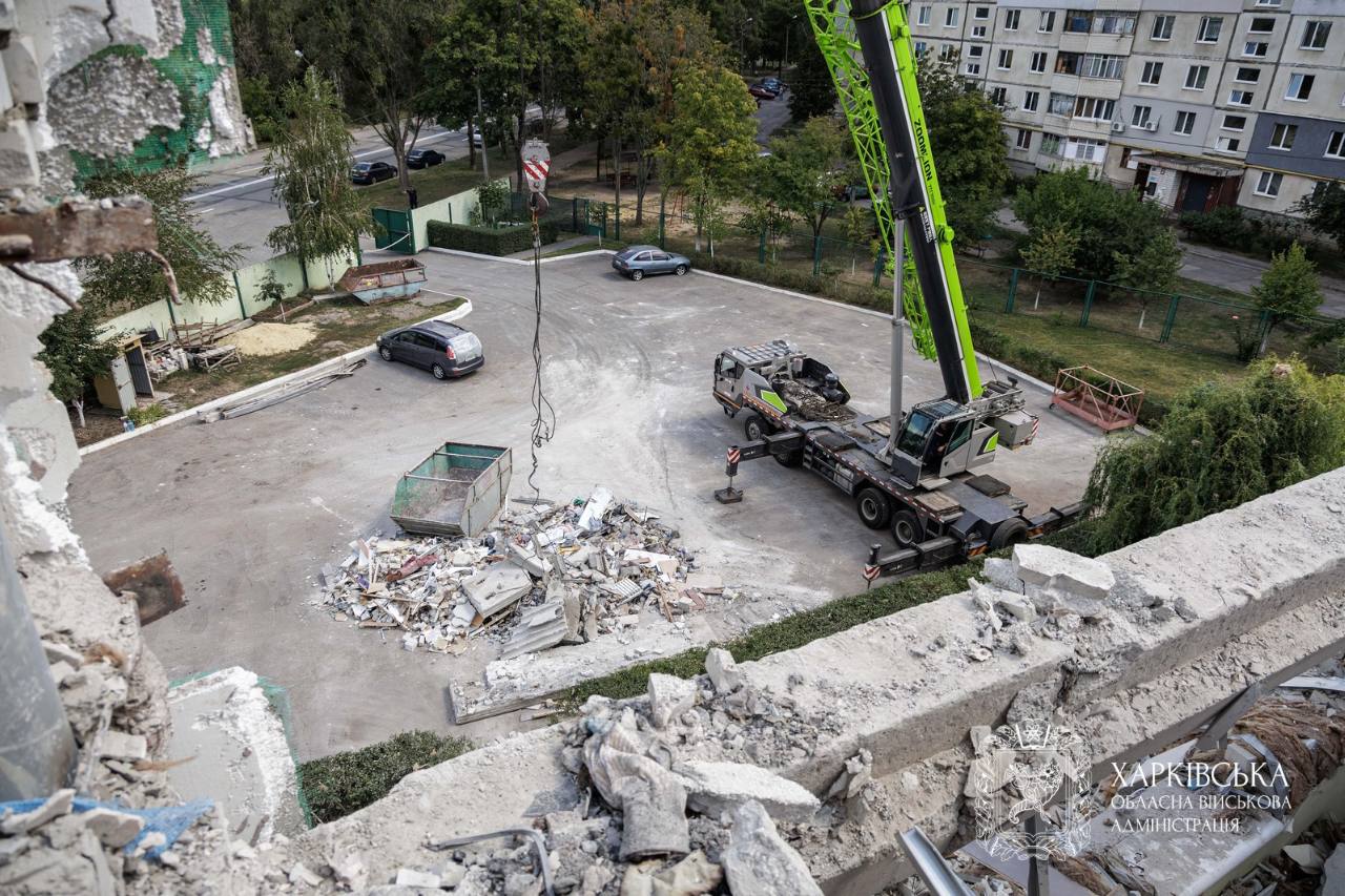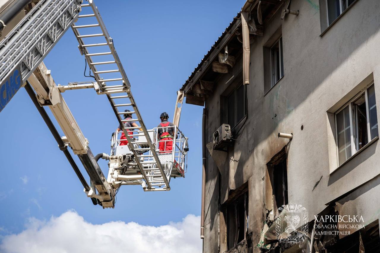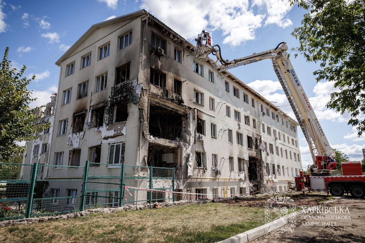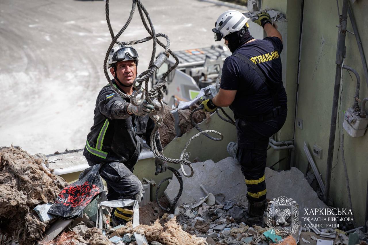 Сотрудники Государственной службы Украины по чрезвычайным ситуациям (ГСЧС) завершили аварийно-розыскные работы на месте российской атаки беспилотниками по жилой многоэтажке в Индустриальном районе Харькова 18 августа.