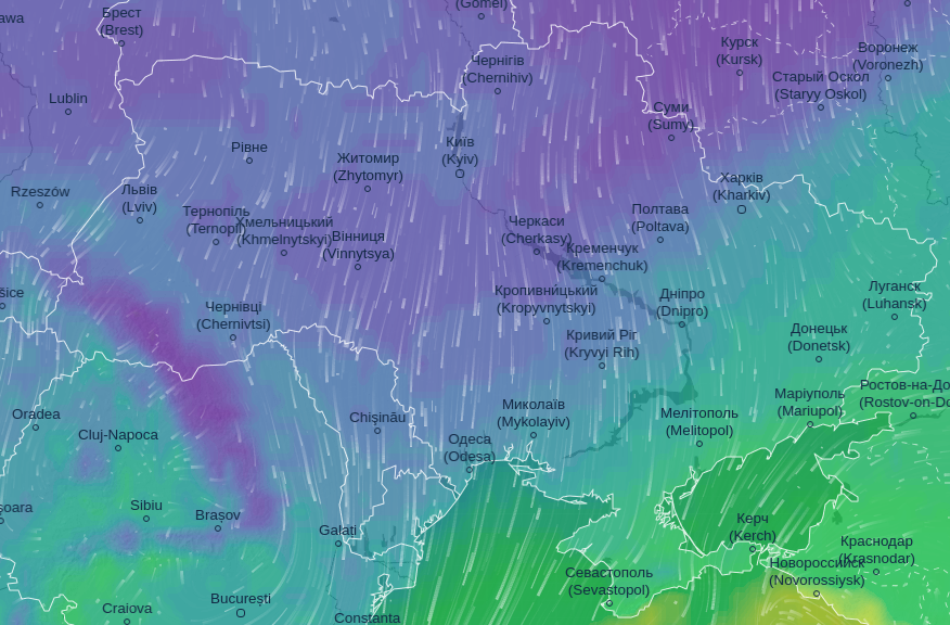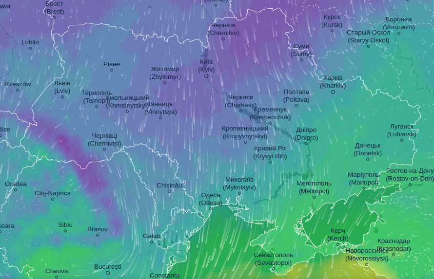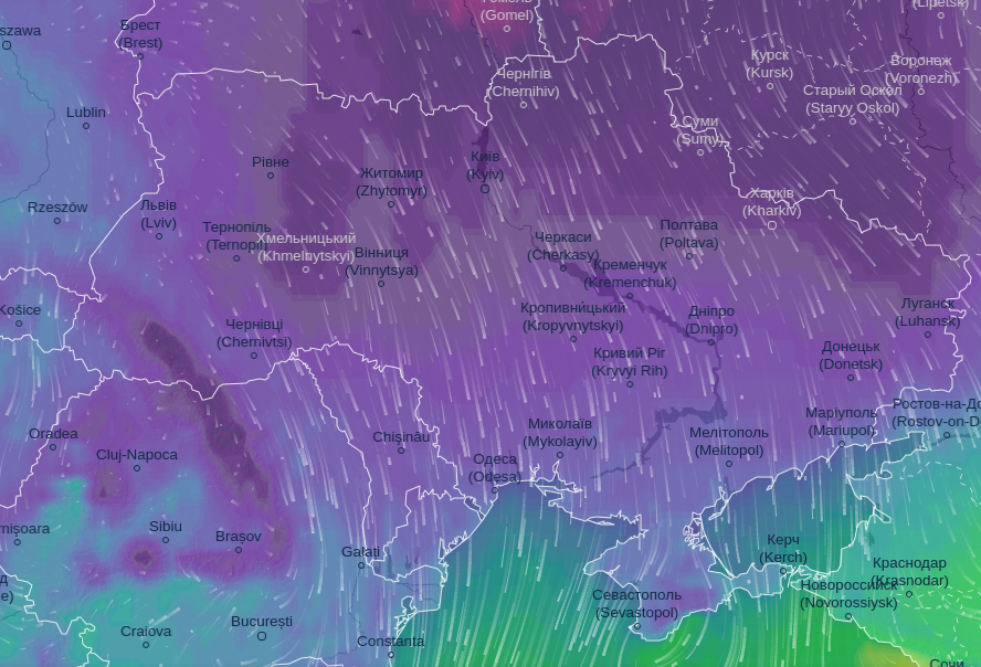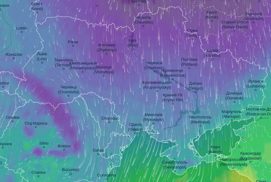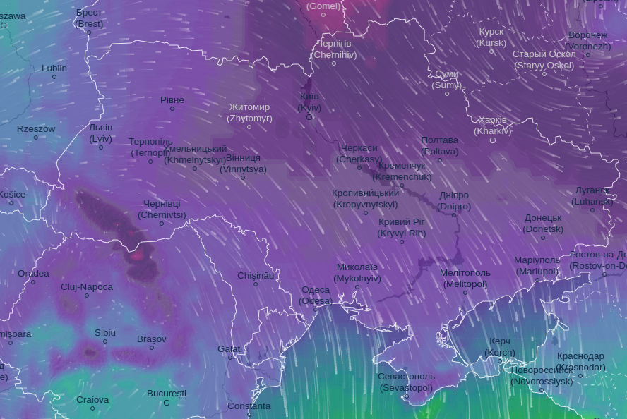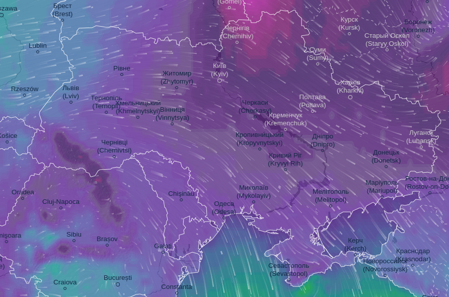 Об этом свидетельствуют данные метеосайта Ventusky.