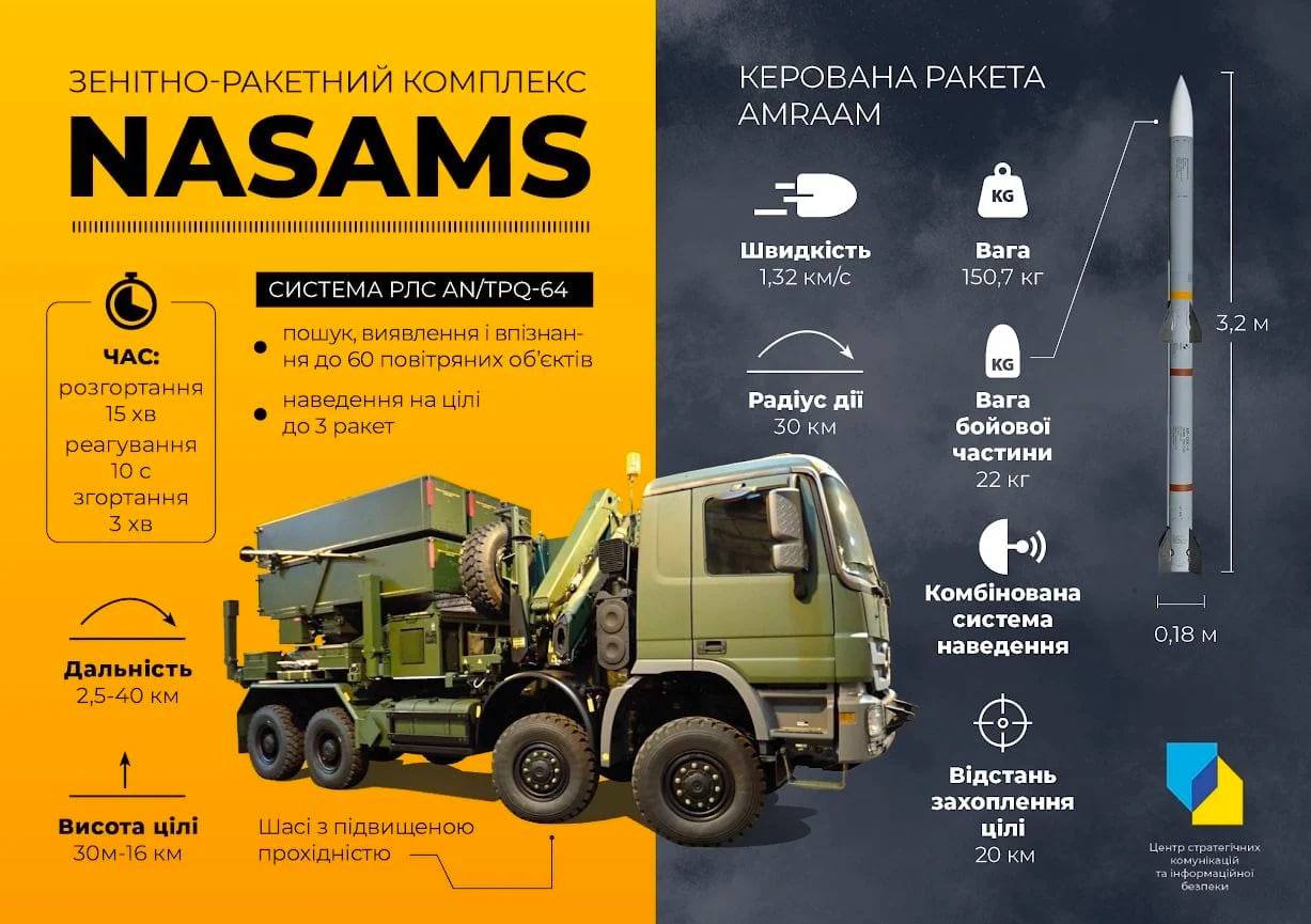 Всего США согласовали передачу Украине восьми установок NASAMS и боеприпасов к ним.