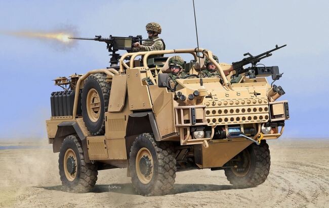 В частности Украине передадут двухосный защищенный бронеавтомобиль Jackal, оснащенный 12,7-мм пулеметом. В британской армии машину используют для разведки и патрулирования.